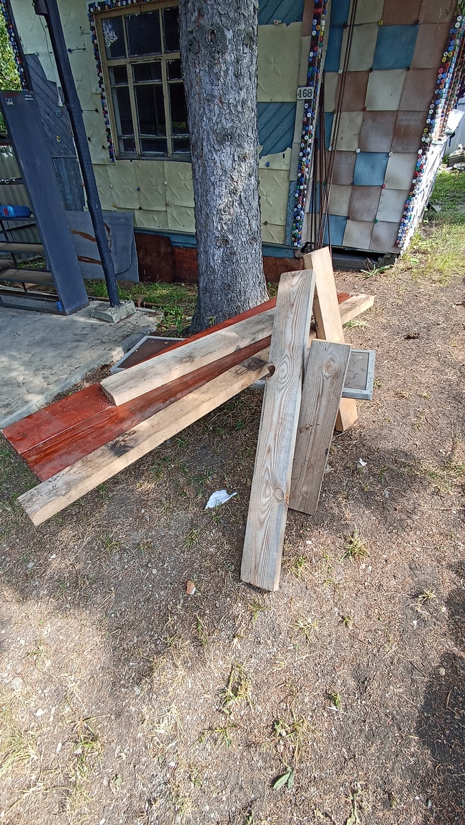 На даче было запланировано мероприятие, должно было придти много людей, а сидячих мест не хватало. Пришлось оперативно делать лавочку из стройматериала. Решил сильно не заморачиваться и сделать скрещённые ножки. Сначало разметил место соединения, затем сделал надрезы пилой и стамеской аккуратно все выбил и зачистил) затем скрутил их между собой саморезами. Сначало прикрутил перемычку. Дела шли очень хорошо и я не стал останавливаться чтобы немного отдохнуть. Отпилив ножки, сразу начал прикручивать доски на спинку и сидение. Мне сильно повезло, у меня уже были покрашенные две доски. Они прекрасно легли на ножки! Все собрав, понял что некоторые углы можно подпилить и все разметив разобрал лавочку и придал ей более эстетический вид. Результат мне очень понравился и я решил её сразу опробовать. Тут и вылез один катастрофический косяк. Угол у ножки оказался слишком острым и она не сильно выпирает назад. Поэтому если на лавочку сильно облокотиться, то она может кувыркнуться назад