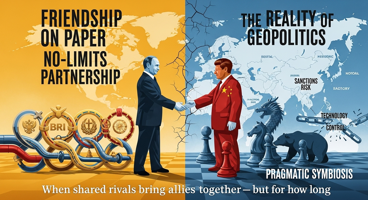 Москва, Россия - На мировой арене российско-китайские отношения предстают образцом стратегического партнерства и добрососедства. Официальные заявления полны заверений о «дружбе, не имеющей границ», совместном продвижении к многополярному миру и всеобъемлющем взаимодействии, вступающем в новую эпоху. Лидеры обеих стран регулярно обмениваются визитами, подписывают многомиллиардные контракты и демонстрируют полное взаимопонимание по ключевым вопросам международной повестки. Но что скрывается за этим фасадом идеальных отношений? Является ли этот союз искренней дружбой или же это брак по расчету, продиктованный суровой геополитической реальностью? На бумаге все выглядит безупречно. Экономическое сотрудничество демонстрирует впечатляющую динамику: товарооборот между странами неуклонно растет, реализуются масштабные совместные проекты в энергетике, инфраструктуре и высоких технологиях. Россия выступает для Китая надежным поставщиком энергоресурсов, в то время как Китай для России – источнико