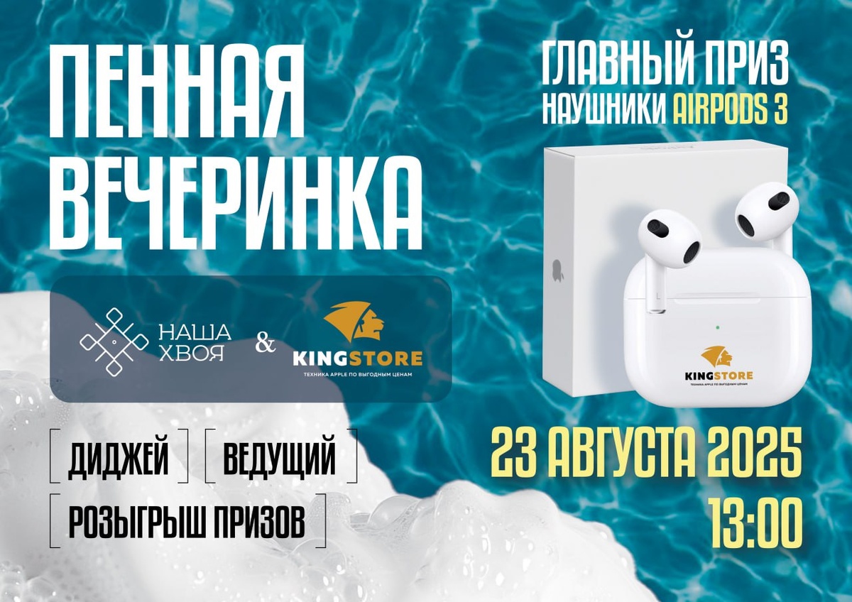 🌞 АВГУСТОВСКИЕ ВЫХОДНЫЕ В «НАШЕЙ ХВОЕ» — МОРЕ МУЗЫКИ, СОЛНЦА И ВОДЫ! 🌞 🎉 23 августа (суббота) 🏊 13:00 — Вас ждёт грандиозная пенная вечеринка с зажигательными треками от DJ Estete, где каждый гость сможет окунуться в атмосферу беззаботного веселья под летним солнцем. В это же время состоится розыгрыш крутых призов от наших партнёров: главный приз — новые AirPods 3 от Kingstore, а также СПА-процедуры от «Нашей Хвои» и поездка на квадроциклах. 🎤 19:00 — Вечером приглашаем в Lounge ресторан насладиться живым выступлением певицы Любови Орловой. 🎶 24 августа (воскресенье) 🏊 13:00 — Продолжаем летние развлечения у бассейна с DJ Bocha. Музыка, солнце и веселье — идеальное сочетание для яркого воскресного дня! Проведите эти выходные в атмосфере музыки и отдыха! Ваш парк-отель «Наша Хвоя» — место, где рождаются прекрасные воспоминания! 🌴🎶 📍 Адрес: ул. Санаторная, 28 📞 Телефон: +7 991 081-37-26 🌐 Сайт: nasha-hvoya.ru