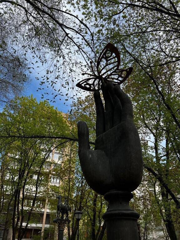 Нашли бесплатный музей под открытым небом 👀 Гуляли тут по Арбату и забрели в тихий сквер со скульптурами Бурганова. Фигуры абстрактные и загадочные, их хочется рассматривать и разгадывать! Среди них: ангел, руки, женщина с крыльями и даже рождение пегаса на пятом фото (кто бы мог подумать!) 📌 переулок Сивцев Вражек