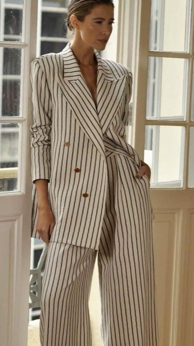 Принт в полоску — один из самых коварных. С одной стороны, он вечно актуален и ассоциируется с французским шиком, свежестью и легкостью. С другой — стоит ошибиться с направлением или шириной полосы, и фигура моментально кажется шире. Особенно важно это учитывать после 40: лишние сантиметры в зоне талии или бедер уже не хочется демонстрировать, а наоборот — хочется визуально стройнить и вытягивать силуэт. Но хорошая новость: правильно подобранная полоска работает как скульптор. Она способна удлинить ноги, добавить роста и даже скрыть лишние объемы. Я собрала три уровня смелости в работе с полоской — от безопасного до более экспериментального. Если вы никогда не носили полоску или боитесь эффекта «шире, чем есть», начните с самого простого варианта: тонкая вертикальная полоска. Почему это работает: Как носить после 40: ⚡ Совет: выбирайте мягкий контраст (например, белый + серый или белый + нежно-голубой), а не черно-белую графику, если не хотите эффекта «зебры». Когда простая вертикаль у