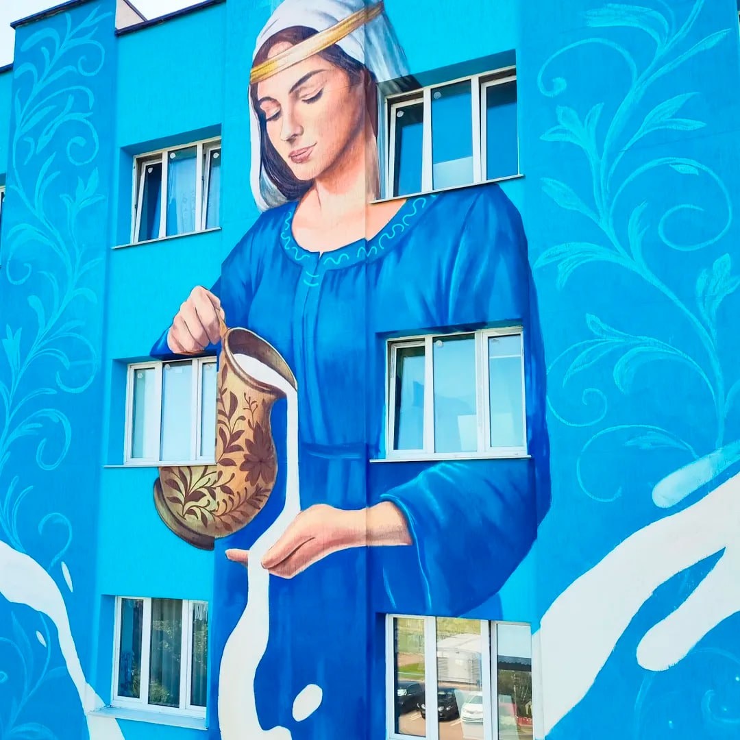 🦁 У Лідзе з’явіўся новы ўнікальны мурал На будынку інтэрната па вуліцы Транспартнай, 4, к. 1 з’явіўся новы мурал, створаны камандай Urban Myths. Аўтарамі эскізу сталі Яўген Мутус і Сяргей Русакоў. Яўген Мутус у сваім Instagram адзначыў, што ў беларускім фальклоры і паэзіі «Млечны шлях» разумеецца не толькі як астранамічная з’ява, але і як сімвал дарогі. У народзе яго называюць «Птушынай дарогай» — шляхам, па якім птушкі ляцяць у вырай, а душы продкаў адпраўляюцца ў свет багоў. Ён падкрэсліў, што жанчына з малаком на мурале ўвасабляе пачатак, урадлівасць і сувязь пакаленняў. «На нашым мурале малако з яе гарлячыка ператвараецца ў дарогу для птушак і нябесную раку сярод васільковага поля — сімвал бясконцага жыцця, традыцыі і гармоніі», — дадаў аўтар. Фота: mutus_evgeny ў Instagram.