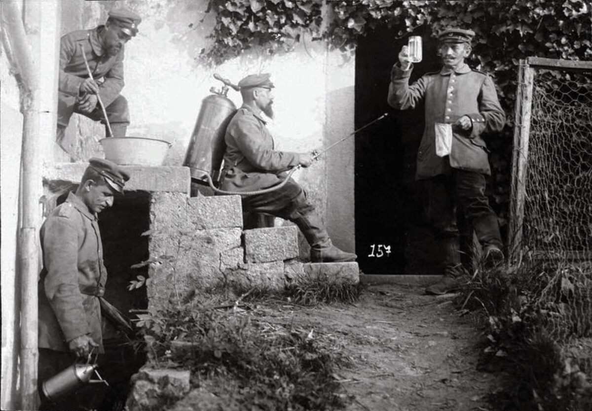 Немецкие солдаты на французской винодельне, 1918 год. Фотография Eberth.
