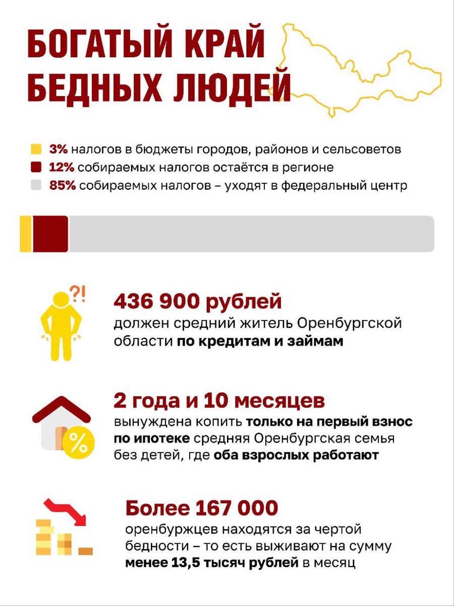 ⚡️Справедливая Россия выступила с инициативами по защите доходов Оренбуржцев от инфляции Одна из ключевых проблем, которая волнует сегодня жителей — неуёмный рост цен на всё: продукты, товары и услуги, жильё, транспорт и ЖКХ... В условиях постоянного давления на семейные бюджеты становится актуальной проблема откровенного нищания наших людей. Сегодня справедливоросы во главе с Оксаной Набатчиковой вновь выступили с ключевыми инициативами по поддержке жителей. «Наш край богат природными ископаемыми, талантливыми людьми... Но жители в нём бедные. Смотрите сами: 436 900 рублей должен средний житель Оренбуржья по кредитам и займам, более 167 000 официально нищие, на первый взнос по ипотеке молодые семьи копят годами! — подчеркивает Оксана Набатчикова — это как минимум несправедливо; мы не согласны с идеей, что сейчас "просто такое время". У государства есть механизмы, а у нашей партии предложения, которые помогут всё вернуть на свои места» — заключил политик. 📎 Справедливая Россия на ф
