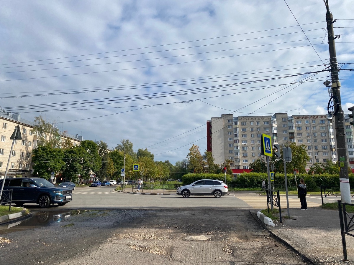 Срезали асфальт перед перекрестком на улице Владимирская. От Трайтека до перекрестка. Давно пора)