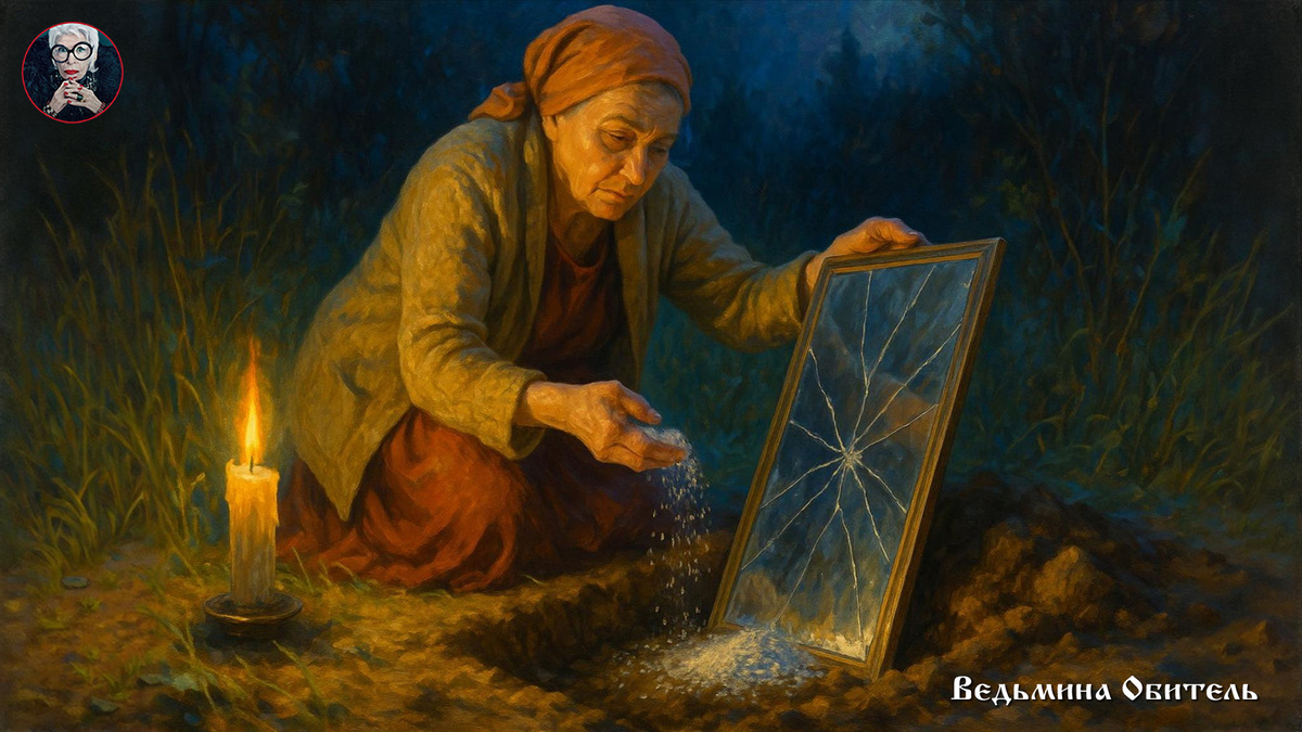 Дождитесь темноты, возьмите это зеркало да пачку обычной соли. Идите на пустырь подальше от людских глаз. Выкопайте ямку, положите туда зеркало, щедро солью засыпьте и землёй прикопайте. А потом — это важно! — молча, не оборачиваясь, домой ступайте. Дома сразу в ванну — смойте с себя всё, что к вам могло прицепиться. И спать ложитесь с лёгким сердцем!