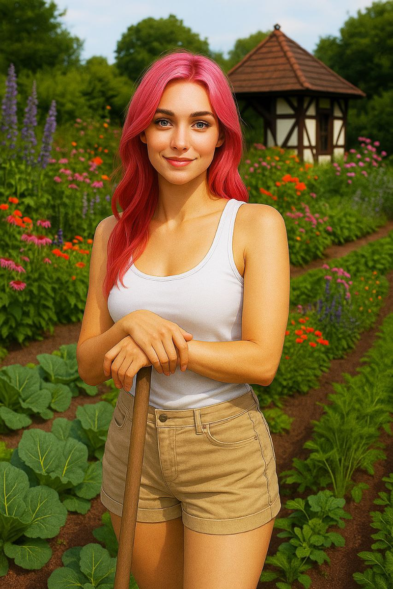 И тут всё пошло не по плану. Стоило мне приоткрыть засов, как Борька, визжа от восторга, с такой силой рванул на волю, что дверь распахнулась настежь, ведро вылетело из моих рук, а я едва удержалась на ногах. Миг — и розовая молния промчалась по двору прямо к огороду.