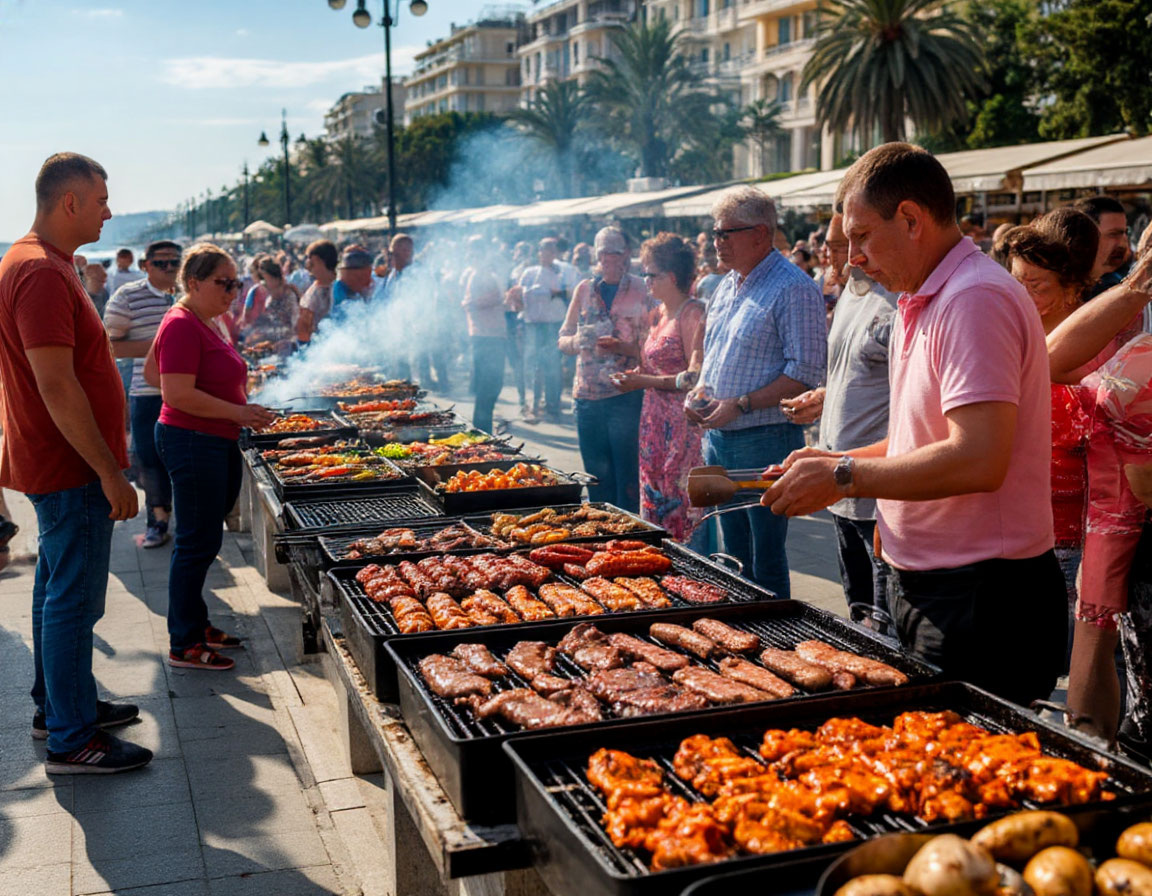 Представьте, вот он, изящный, в своём неизменном пенсне, выходит на некогда имперскую набережную. Вместо запаха моря и дорогих духов — аромат массового мангала.