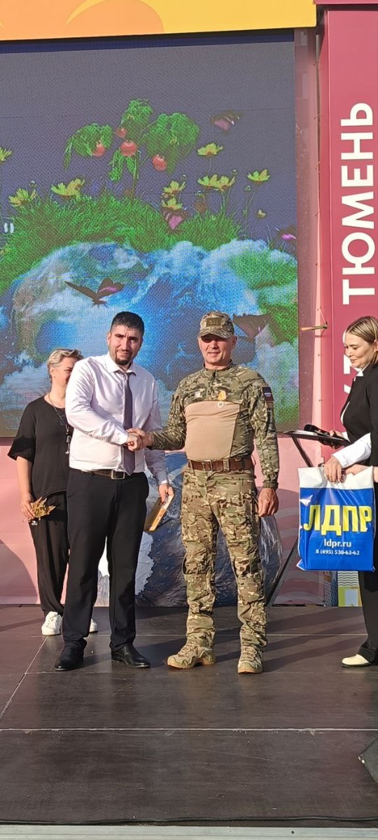 В рамках награждения как заместитель руководителя фракции ЛДПР Тюменской областной думы вручил заслуженные медали и грамоты надымским волонтёрам за доставку гумконвоев в зону проведения СВО. Также обсудили с волонтёрами возможную помощь бойцам, обещал оказать поддержку в сборе следующего конвоя.