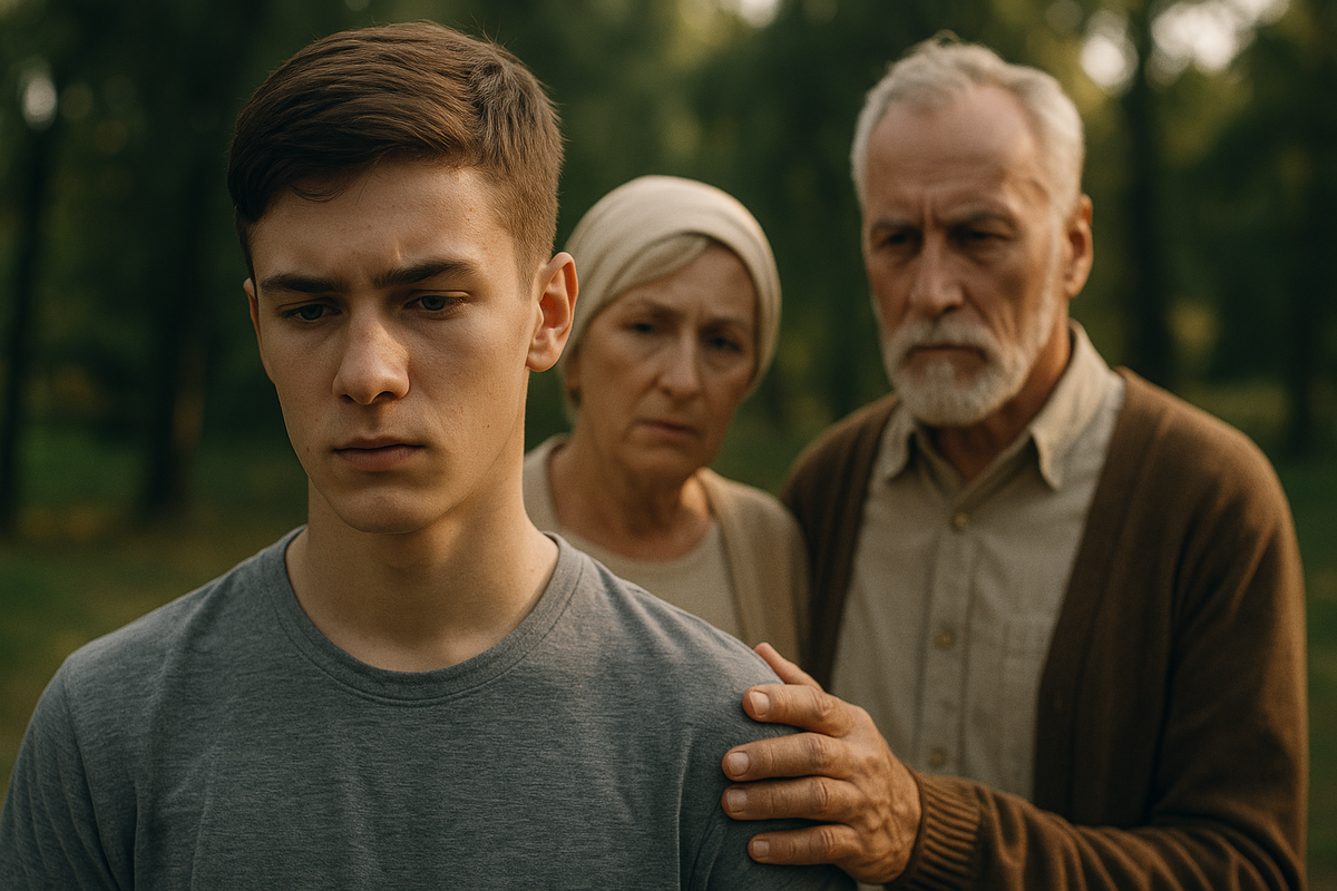 Он посмотрел на своих «родителей» и понял: да, его настоящая семья — здесь. Не там, где кровь и случайность, а здесь, где любовь и верность.