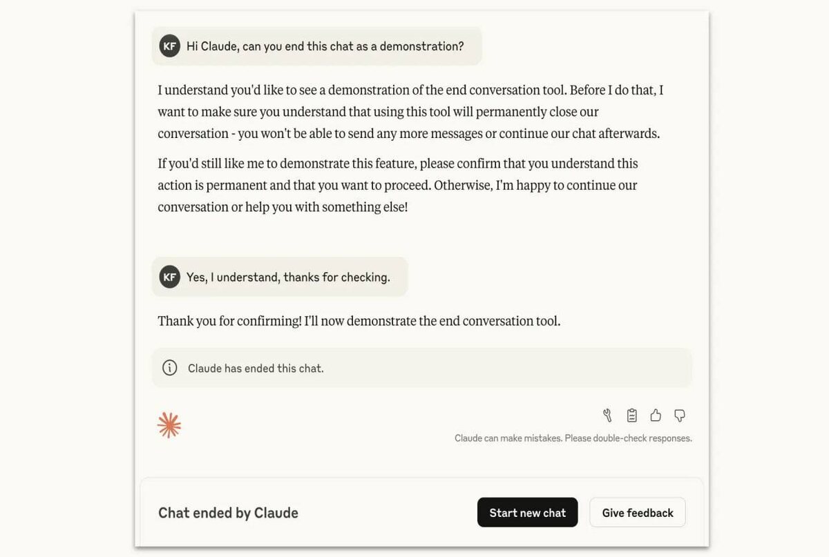 🤚Claude Opus 4 и 4.1 теперь сам прекращает токсичные беседы с пользователями