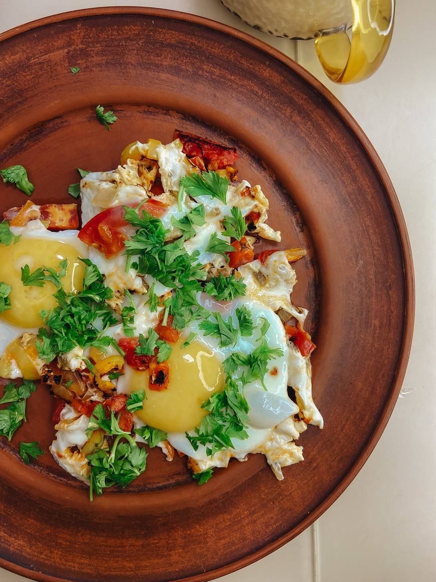 Один из любимых моих завтраков - это шакшука 😊 Завтрак для нашей семьи это уже по большей степени ритуал. Ритуал, который посвящён нам с женой. С утра первый просыпаюсь я, но так было не всегда 😂🤭 Иду умываться, принимаю холодный душ и иду будить жену. Сначала бужу мило, потом стаскиваю за ноги 😂 После она идёт умываться, я пока занимаюсь сборкой постели, и растелаю коврики. Уже больше 2 лет мы делаем 😊 зарядку по утрам вместе . И уже после зарядки мы завтракаем, если интересно могу поделиться нашими завтраками, что мы обычно кушаем 😊 И это рутина, которая нравится, которая приносит удовольствие, а не жёсткая мотивация ебш. Хорошего вам дня)