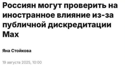 😱Проверять на иностранное влияние будут тех, кто критикует мессенджер МАХ. С таким предложением выступили в Госдуме. «Не исключаю возможности, что те же самые силы, которые пытаются обманывать наших людей, не заинтересованы в оттоке наших граждан с двух иностранных платформ, через которые они привыкли работать. Лично я не вижу большой волны негатива. На мой взгляд, наоборот, Max уверенно идет вперед. Проводятся обновления, у него появляются новые функции, новые возможности. И все больше людей скачивают это приложение», — заявил глава комитета ГД по информационной политике Сергей Боярский.