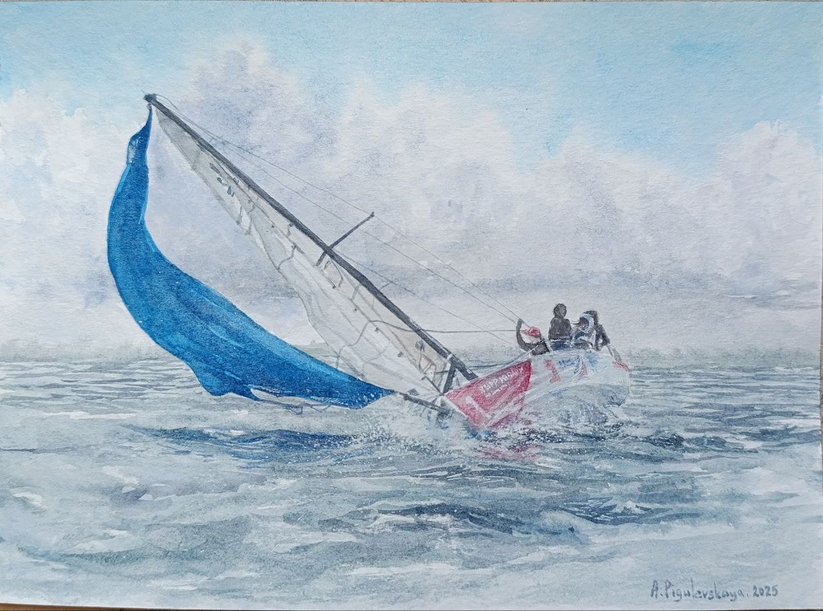 . 180х250 mm paper, watercolors, gel pen . Вдохновилась фотографиями @kate_oceansoul с регаты "кубок губернатора", которая проходила в субботу (16 августа) на акватории Калининградского залива😍 . P.S. картина ищет дом. . #art #watercolor #watercolorsketch #sketch #sketch_daily #sketchoftheday #sketchbook #urbansketchers #urban #architecture #graphicdesign #design #interior #city #boats #yacht #artgallery #sea #graphic #yachtclub #racing #sailing #regatta #j70 #apigulevskaya_art