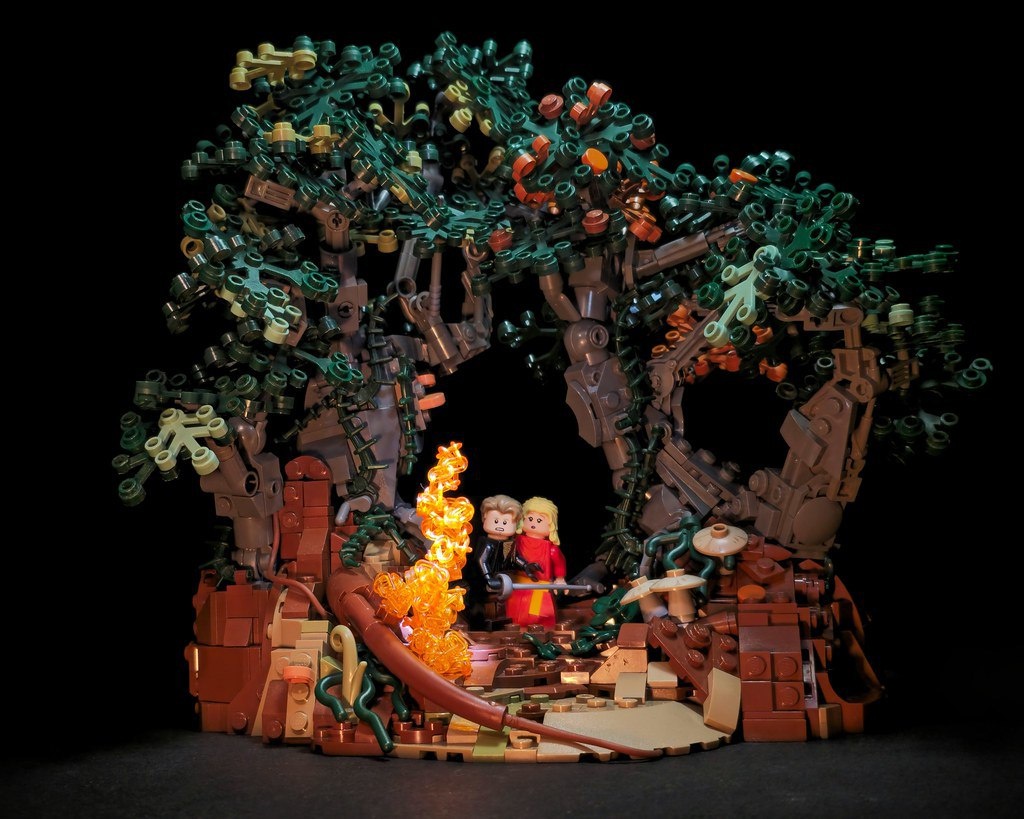 Огонь и болото по-LEGO: The Princess Bride в кирпичиках 🔥 FS Leinad снова порадовал фанатов «Принцессы-невесты» — на этот раз эпичным диодом через Огненное Болото! В моделе всё, как в фильме: перекрученные оранжевые цепи вместо пламени, тёмные стволы деревьев из деталей Bionicle и идеальные минифигурки Уэстли и Баттеркап. Особенно круто передана атмосфера опасности — кажется, сейчас выскочат ГРОМы (Гигантские Разъярённые Огромные Мыши). Но их же не существует, правда? 😏 Кстати, это не первый трибьют Leinad — его прошлый проект по мотивам фильма набрал 10К голосов на Ideas! Источник: The Brothers Brick