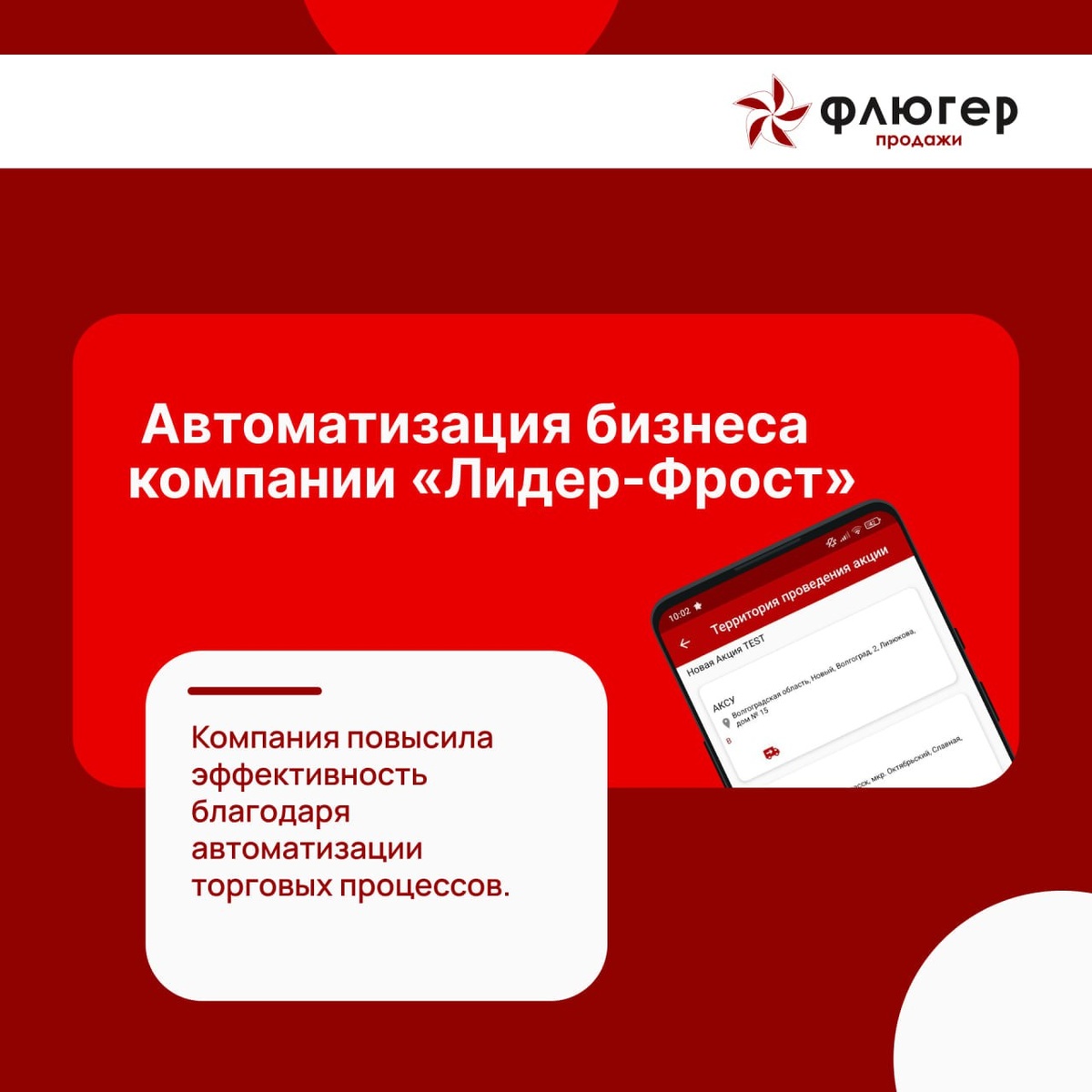 ООО «Интернет-Фрегат» успешно завершило автоматизацию работы торговых представителей ООО «Лидер-Фрост», расположенного в г. Симферополе. Компания специализируется на оптовой продаже товаров, включая рыбу и морепродукты. С помощью системы «Флюгер-Продажи» автоматизированы ключевые процессы, такие как регистрация заказов, контроль поставок, управление возвратами товаров и оборудования, а также оптимизация маршрутов сотрудников. Кроме того, обеспечено оперативное формирование аналитической отчетности для оценки эффективности и выполнения планов продаж. В результате внедрения «Флюгер-Продажи» компания «Лидер-Фрост» отметила значительное повышение эффективности взаимодействия с клиентами, сокращение временных затрат на рутинные операции и улучшение качества обслуживания. Перед приобретением программного обеспечения имеется возможность бесплатно попробовать демоверсию (https://free.ifluger.ru/), которая предоставляет доступ ко всем основным функциям в течение 90 дней. 👉 Подписывайтесь н