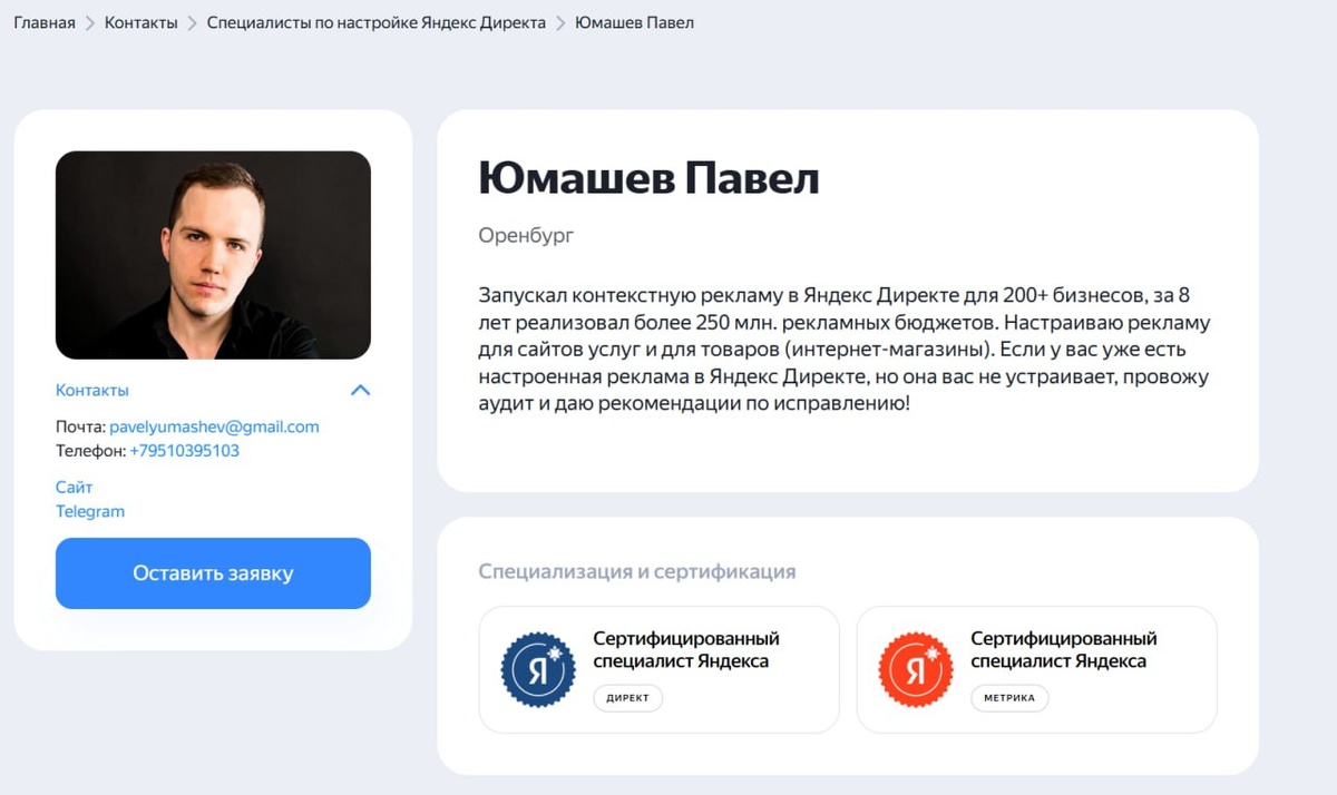 Кто не знал, я являюсь официальным сертифицированным специалистом по 😃Яндекс Директ и 😀Яндекс Метрике. Проверить можно здесь: https://yandex.ru/adv/contact/freelancers/yumashev_pavel P.S. Очень хотел туда попасть. Мысли материализуются.