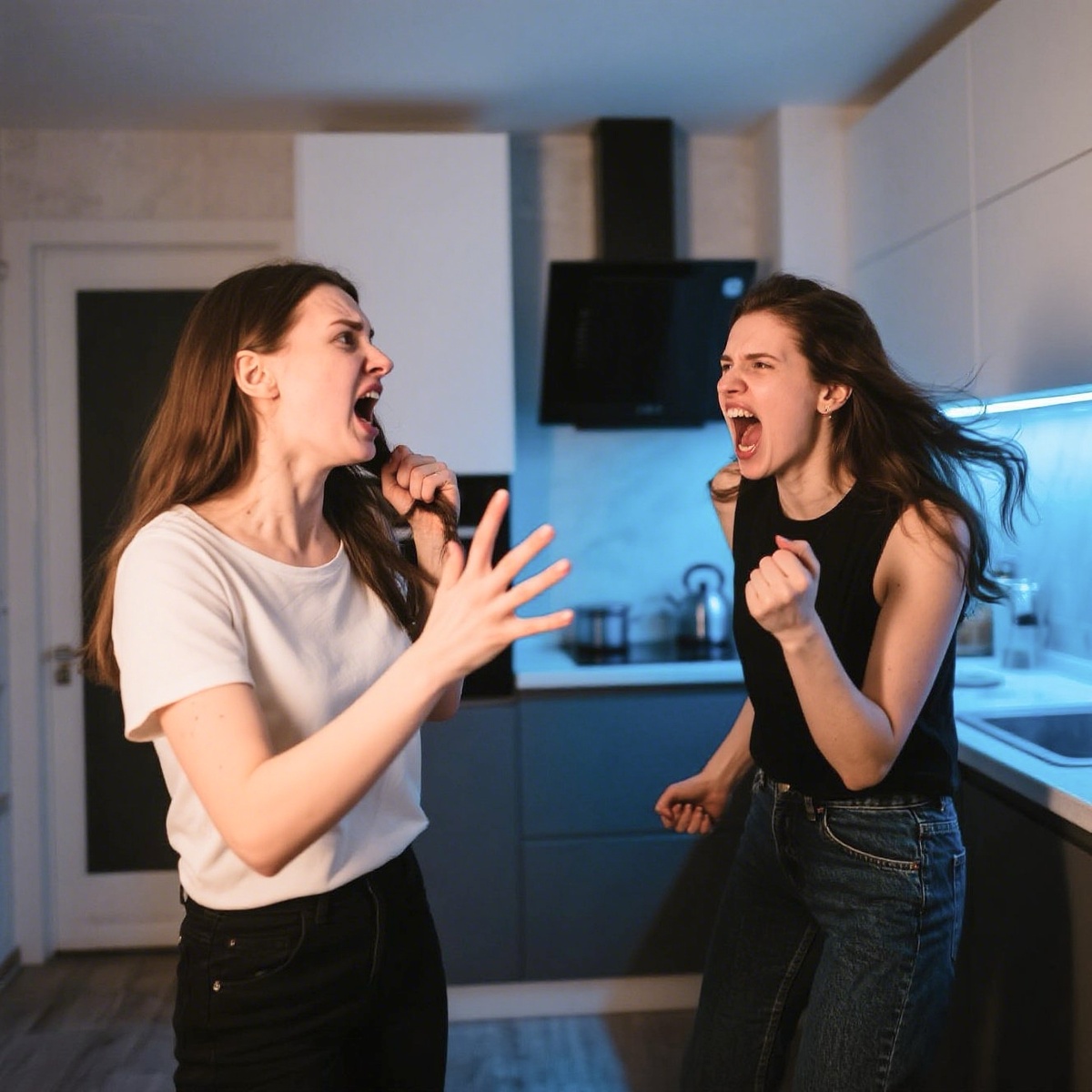 — Она сама виновата! — заголосила Вика. — Пристаёт ко мне, требует, чтобы я готовила и убиралась! Я что, служанка?