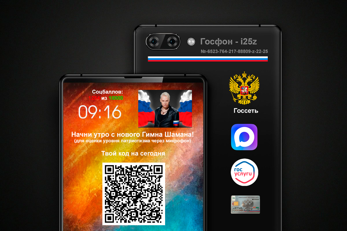 Подкидываю свежую идею для «распила». Надо создать «Госфон» — государственный смартфон. По закону его обязать его купить каждого Россиянина (а лучше сразу бесплатно выдавать при рождении). В нём будет всё: паспорт, налоги, MAX, Госуслуги, соцбаллы, Банки, (счётчик шагов и кнопка «Донос на соседа»). А в 18 лет — торжественное подключение к «Госсети». Вот где настоящий цифровой праздник!