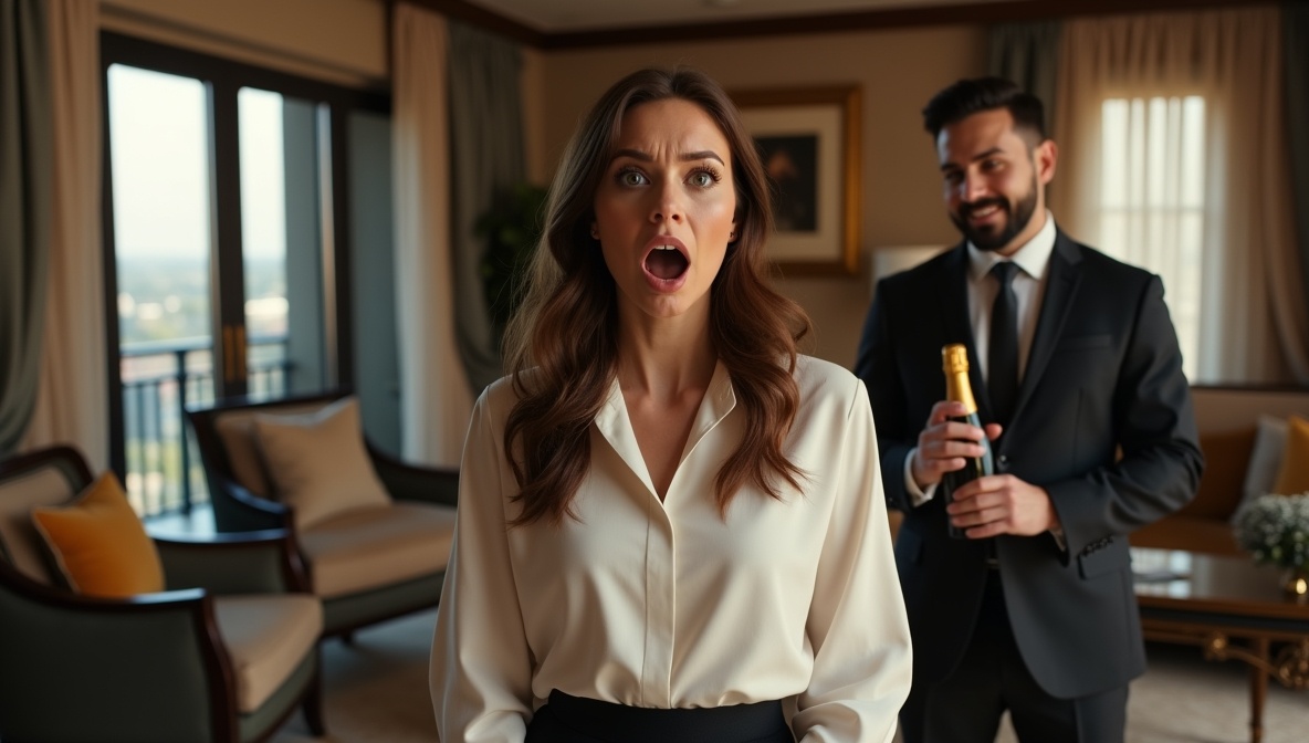 Муж бутылку открыл, наливает. Ей бокал протягивает.