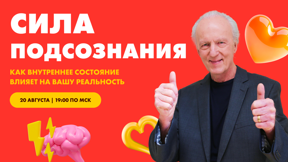 Один и тот же жизненный вызов может кого-то парализовать, а кого-то — вдохновить действовать. Разница не во внешних обстоятельствах, а в том, что происходит внутри. Уверенность превращает даже трудности в зону роста. 🌟 Джон Кехо говорит: «Жизнь не меняется от того, что вы просто хотите её изменить. Она меняется тогда, когда меняетесь вы». И первый шаг — внутреннее состояние. 📆 Уже завтра, 20 августа в 19:00 по Мск, мы встретимся на бесплатном вебинаре «Сила подсознания: Как внутреннее состояние влияет на вашу реальность». В прямом эфире вы сделаете практику — управляемую визуализацию на уверенность. Эта практика станет вашим инструментом: 🔸 Для регулярной внутренней работы 🔸 Для ситуаций, когда нужно поддержать себя 🎁 Все участники, кто останется до конца, получат практику в подарок, чтобы возвращаться к этому состоянию снова и снова. И мы разыграем дневники «Сила разума» и «Сила благодарности» среди слушателей. Это письмо — приглашение, но и напоминание: уверенность — это не случ