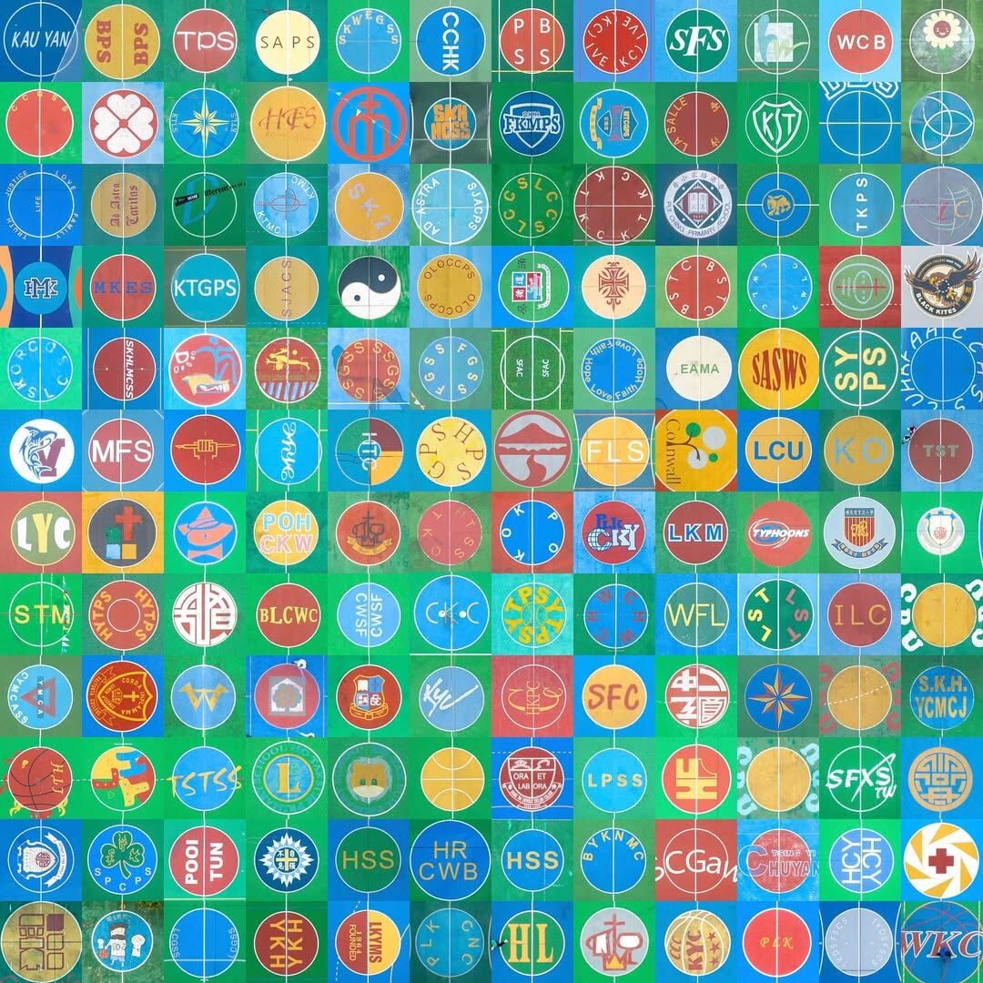 Дизайн центрального круга на баскетбольных площадках гонконгских школ — ещё одно объёмное исследование фотографа Остина Бела