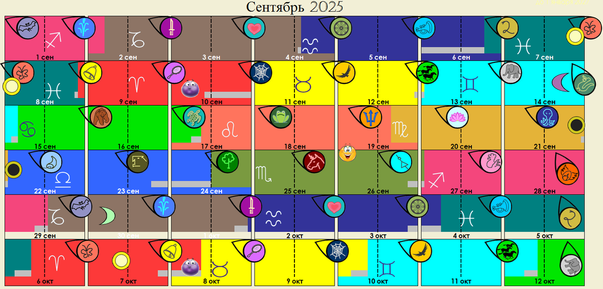 Осенняя порция "Лунных ковриков", На них отмечены • луна в знаках зодиака • фазы луны (новолуние, полнолуние, четверти) • лунные дни • луна без курса ("люди в собственном соку", меньше слышат других. Лично я чувствую непреодолимую сонливость в такие часы/дни) • апогеи и перигеи луны • ретро-меркурий (предвестники будут заметны в октябре, пик приходится на середину ноября) - голубая/синяя полоска с правого края календаря. Подробные описания лунных эффектов во множестве можно найти на различных сайтах (мне нравился "Волниум", хотя и у других почерпнула немало полезных сведений). Это же лишь сводные таблички, которыми удобно пользоваться. Сама я редко вспоминаю о них до намеченных планов, чаще иду не глядя, расхлёбываю, а потом анализируя причины заглядываю-таки в календарь (например, не стоит устраивать вечеринку в дни летучей мыши, паука или спрута - лучше перенести на день до/после). Но чаще луна сама подсказывает настроение - чем заняться. Я, например, не большая охотница до уборки