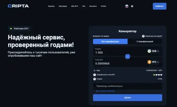 🏆 CRIPTA - обменять рубли на криптовалюту