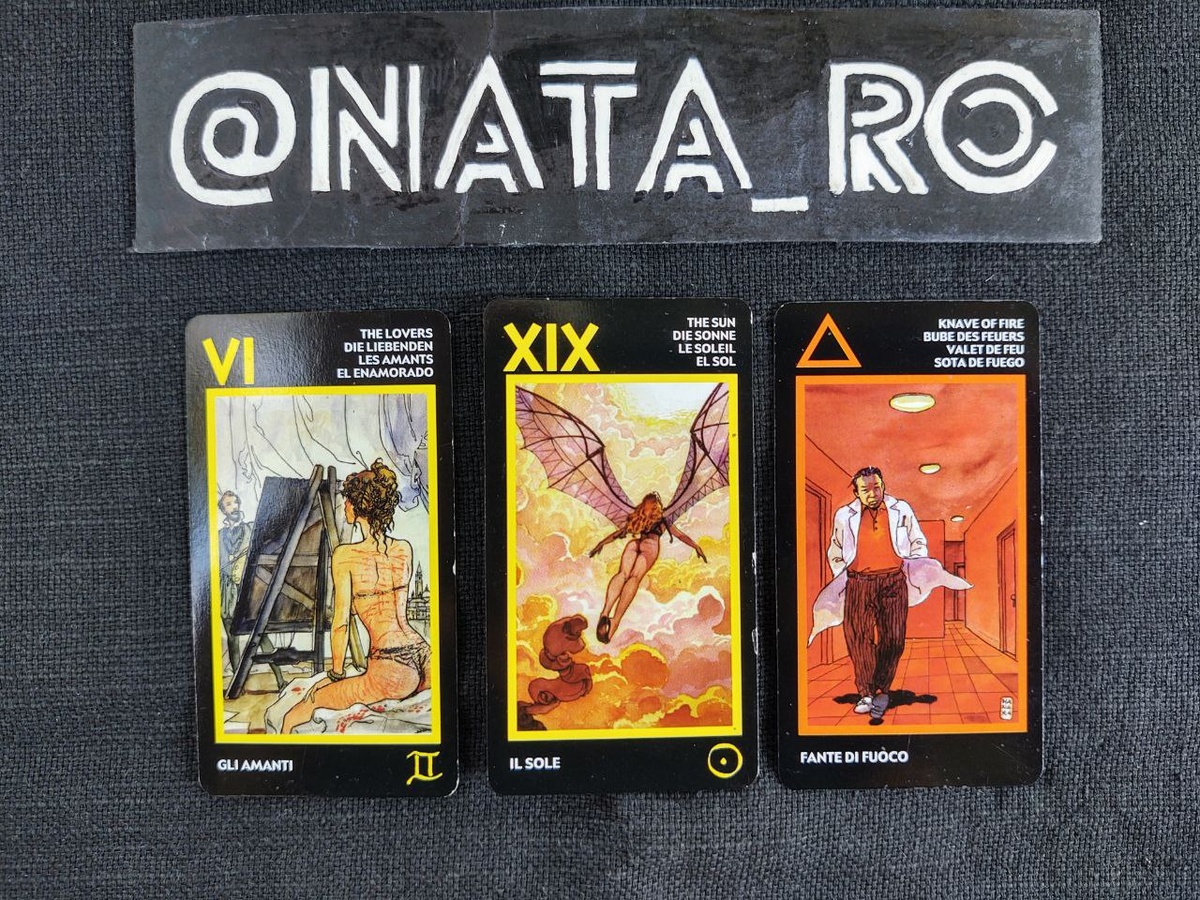 Расклад на тему: В эту минуту, что она думает о Вас? … Выпали: ВЛЮБЛЕННЫЕ…СОЛНЦЕ…СЛУГА ОГНЯ… Любовь иногда называют болью души… Это как две стороны одной медали: приобретая целый мир, приобретаешь всю радугу чувств и ощущений: от восторга до болезненного страдания; от нежной теплоты близости до леденящего холода расставания. Ты растворяешься в любимом, переставая понимать, где ты – и где он; где твоя – и где его душа… Когда карта Влюбленные появляется в раскладе, это может означать, что загаданному человеку, пришла пора решить, кто режиссер в ваших отношениях. И не слишком ли далеко вы зашли…не заигрались ли?... По этому Аркану придется определиться, она тот, кто творит свою жизнь и свои отношения или тот, кто будет просто жертвовать собой? Так ли хорош ее выбор? … Выпавший Аркан Солнце говорит о том, что человек влюблен, у него словно крылья за спиной. Любая задача становится по плечу. Солнце дает возможность отпустить себя, перестать контролировать и слиться с жизненным потоком, пре
