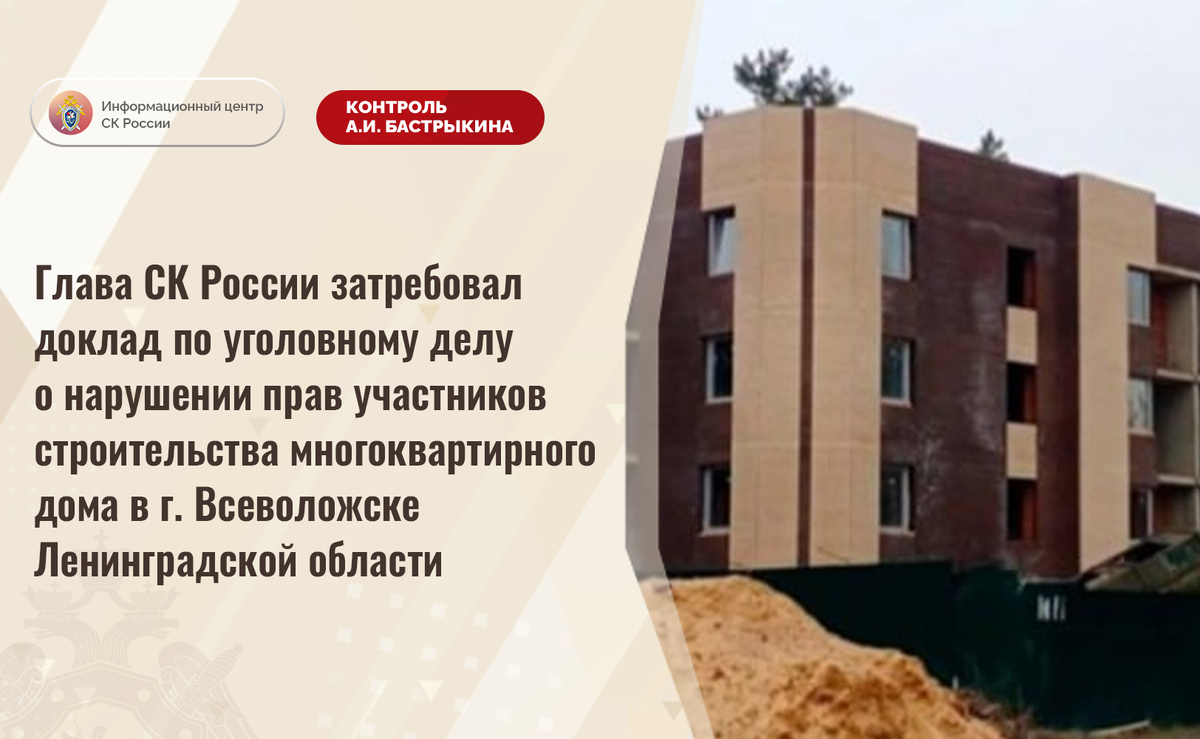 Глава СК России затребовал доклад по уголовному делу о нарушении прав участников строительства многоквартирного дома в г. Всеволожске