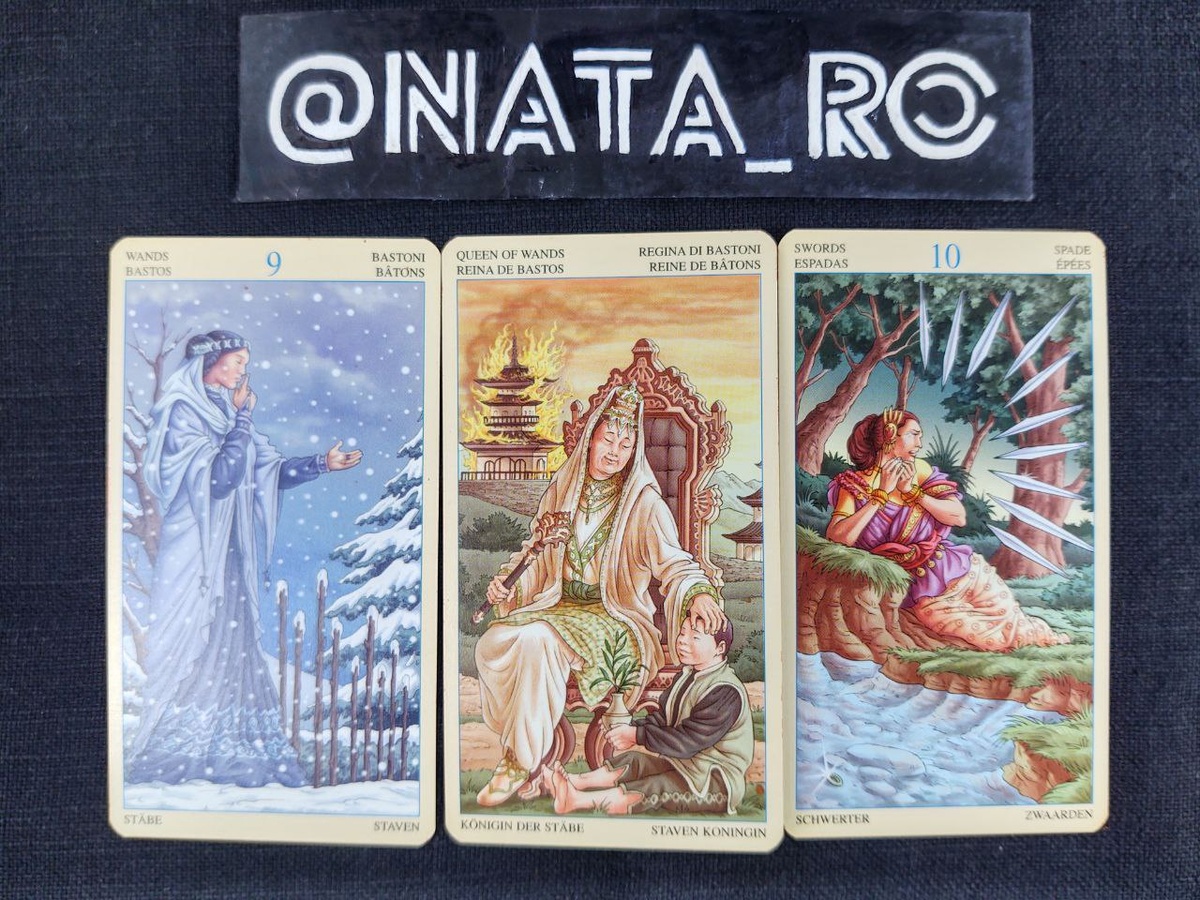 О той, кто в Вашей голове! ... Выпали: ДЕВЯТКА ЖЕЗЛОВ…КОРОЛЕВА ЖЕЗЛОВ…ДЕСЯТКА МЕЧЕЙ… Как подобрать правильные слова, чтобы описать Королеву Жезлов? … В прямом положении Аркан отображает персону- женщину с определенным складом характера. Она спокойна и домовита, она покладиста и рассудительна. Она всегда готова выслушать, понять и помочь. Она добра ко всем- и к тем, кто рядом с нею, и к тем, чьи судьбы и дела не должны ее беспокоить. Она степенна и спокойна, и кажется, что в ее обществе даже воздух движется более упорядоченно и прогнозируемо. По Девятке жезлов можно сказать, она прекрасно понимает, что уже достаточно часто «обжигалась» в жизни, и потому в данной ситуации не видит для себя другого выхода, как только на некоторое время, выстроить стену между собой и окружающими, чтобы не подпустить к себе никого слишком близко. Десятка мечей в прямом положении означает, что в ее жизни все выглядит довольно печально. Возможно, ее любовь внезапно закончилась, и вы расстались, может быть, д