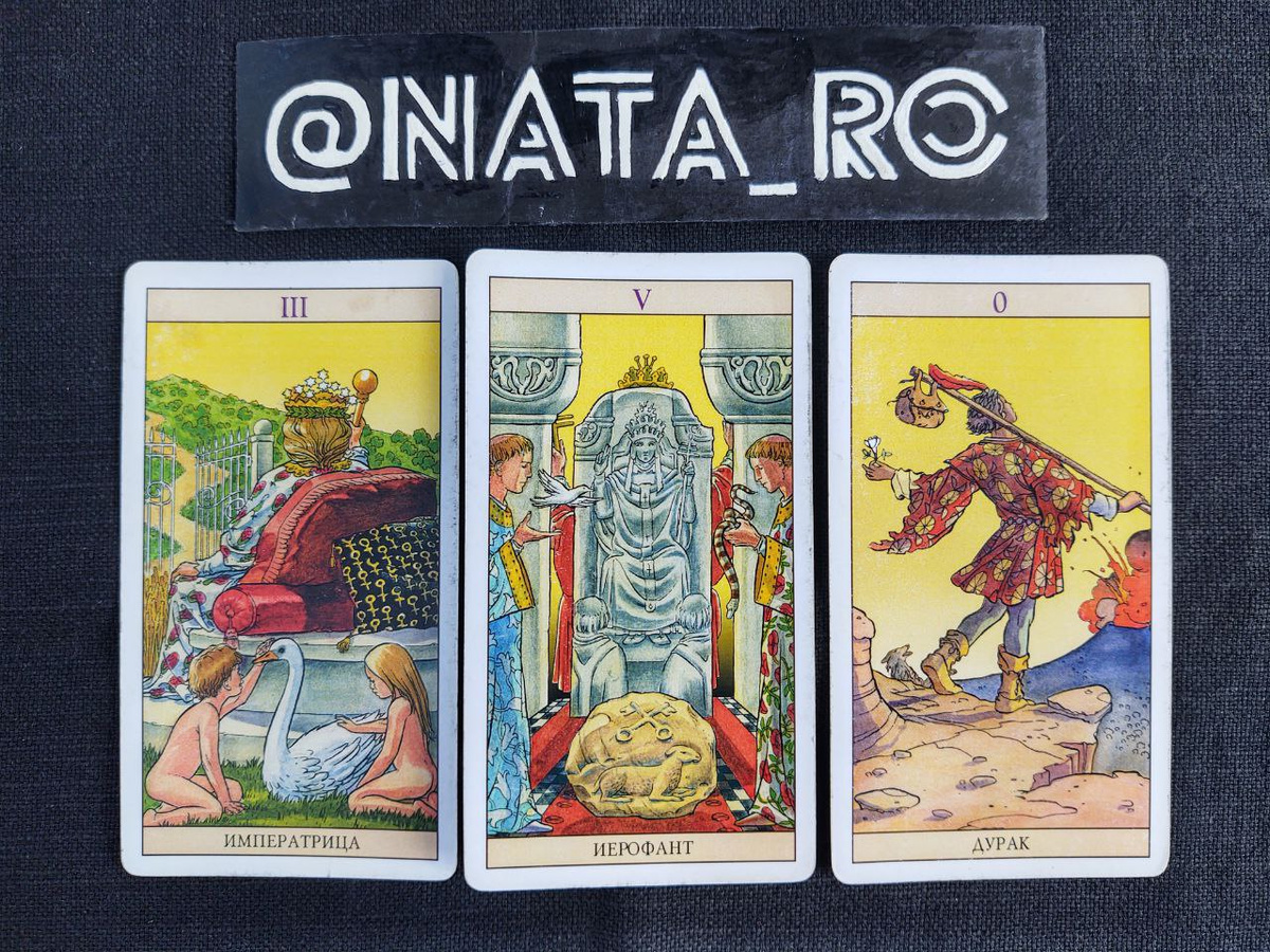 Ловушка, в которую она попала?... Выпали: ИМПЕРАТРИЦА…ИЕРОФАНТ…ДУРАК,,, Аркан Императрица традиционно является сигнификатором женщины-жены, матери, - и женского влияния на поставленный вопрос. Не исключено, что данная карта-знак того, что в деле замешана какая-то женщина. Императрица-прекрасная хозяйка, ее любят, ценят. Она несет решительность, прагматические действия, контроль, она правительница. В худшем случае она может быть заносчивой, властной и раздражительной. Аркан может указывать на выраженное желание вступить в брак, иметь ребенка или заботиться о ком-то. С картой Императрица соотносится понятие мудрости и глупости, и она соответствует той стадии человека, когда он должен осознать те желания, на основе которых он творит свою судьбу. Пятый Старший Аркан символизирует тонкое восприятие событий окружающего мира загаданным человеком. Пришла пора ему найти смысл жизни, проверить прочность духовных принципов, провести переоценку ценностей. Загаданный человек отметает объективное в