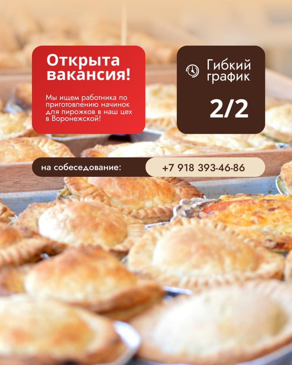 🚨Срочно! Работа в кондитерском цехе «Карамель» 🍩🥐 Ищем работника по приготовлению начинок для пирожков в наш цех в Воронежской! 🚗 Вахта по Усть-Лабинску и ст. Воронежской 🗓 График: 2/2 🧂 Бесплатное питание ✔️Официальное оформление и соцпакет Если вы любите кондитерское производство и хотите стабильную работу — ждём именно вас! 🤝 📞 Все вопросы и запись на собеседование: +7 918 393-46-86 ✨ Делитесь этой новостью с друзьями — возможно, именно они сейчас в поиске работы! #работаворонежская #работаустлабинск #кондитерскаякарамель #вакансия #работавцехе #работаежа #работакраснодар #ищемработника #вакансиясрочно