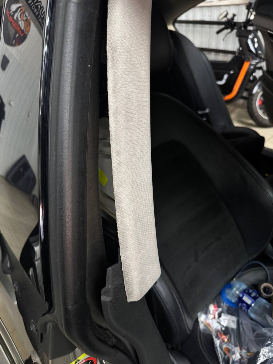 Переходим к салону, разбираем пластиковый порог. Разбирается он путем снятия центральной стойки начинать нужно с самого верха.