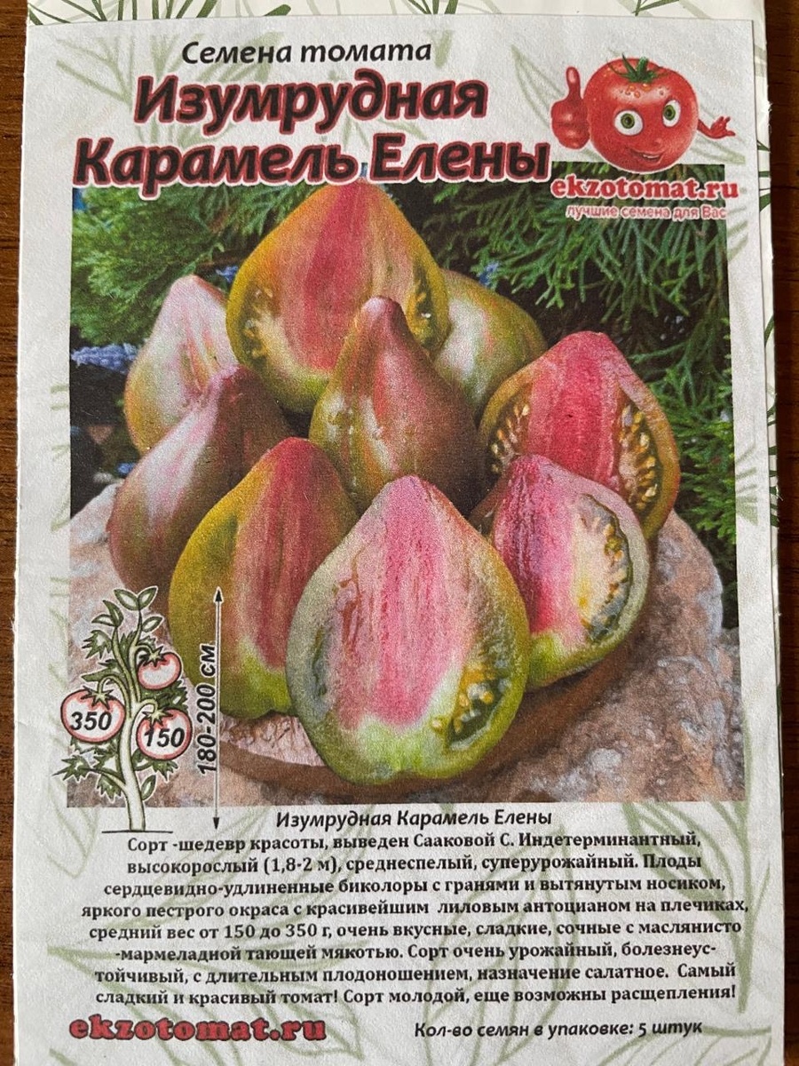 Наконец то смогла собрать свои фотографии и впечатления о этом интересном сорте Софии Сааковой в статью. Семена Экзотомат. Описание сорта: (С сайта, где покупала семена) Сорт - шедевр красоты, выведен Сааковой С. Индетерминантный, высокорослый (1,8-2 м), среднеспелый, суперурожайный. Плоды сердцевидно-удлиненные биколоры с гранями и вытянутым носиком, яркого пестрого окраса с красивейшим лиловым антоцианом на плечиках, средний вес от 150 до 350 г, очень вкусные, сладкие, сочные с маслянисто -мармеладной тающей мякотью. Сорт очень урожайный, болезнеустойчивый, с длительным плодоношением, назначение салатное. Самый сладкий и красивый томат! Сорт молодой, еще возможны расщепления! У меня томат вырос так: 17 мая высадила переросшую рассаду в открытый грунт. Был 1 куст этого сорта. Формировала в один стебель. В этом сезоне выращивала по 3 растения разного сорта около одной опоры. И даже при такой стесненной посадке и при таком формировании, урожайность у него была отличная. Из за пого