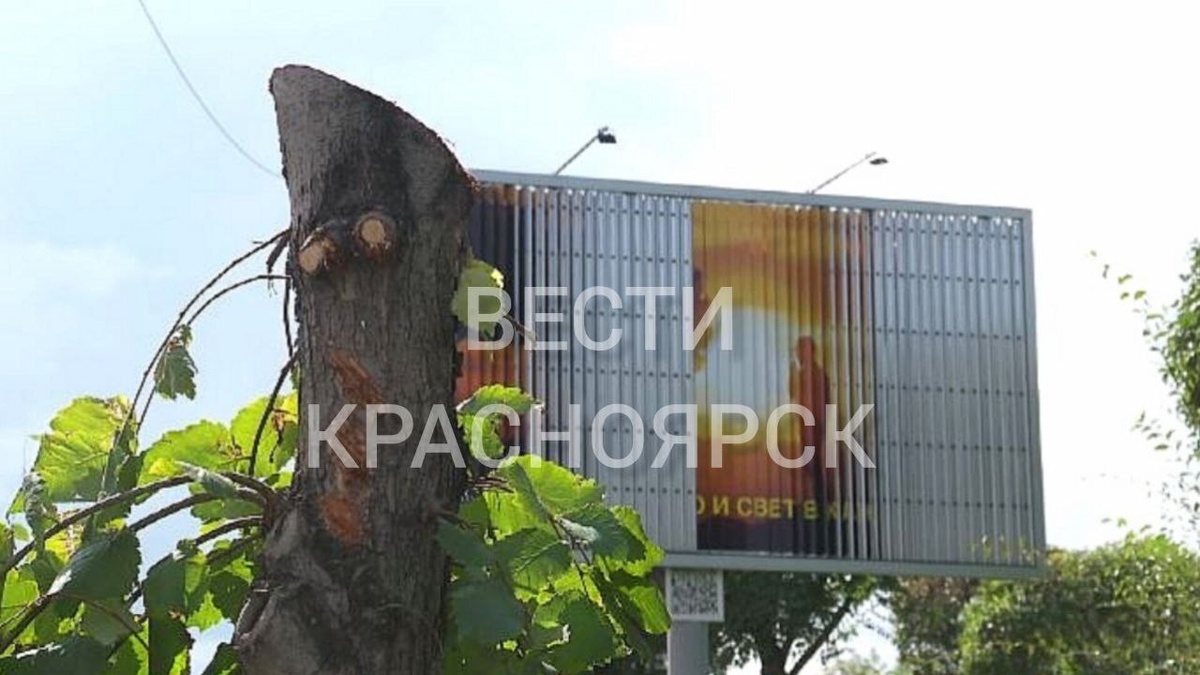 Владельцы рекламных конструкций ради видимости щитов варварски спиливают деревья на улицах Красноярска