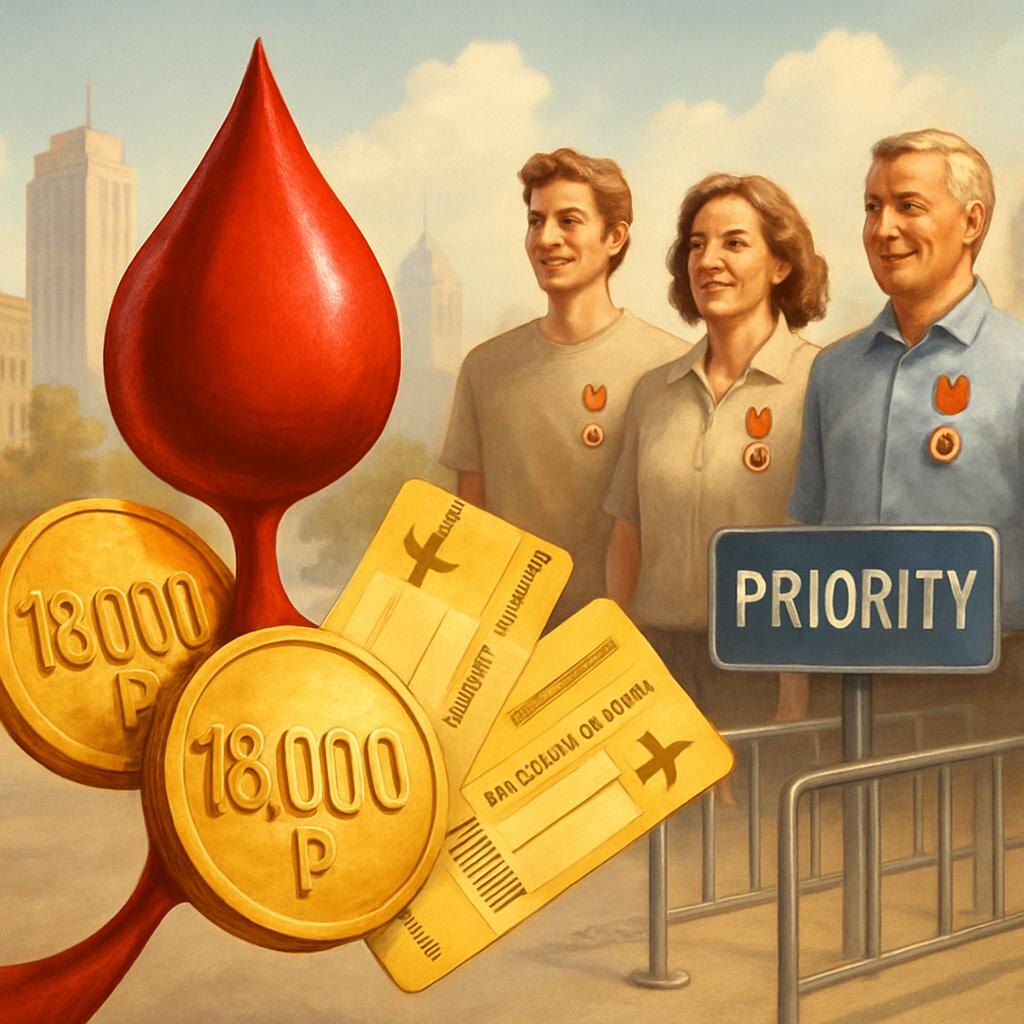 Сдавать кровь — это не только спасение жизней, но и вполне ощутимые бонусы от государства. В 2025 году почётные доноры могут получить ежегодную выплату в 18 103 рубля + целый набор льгот. Разбираемся, как это работает. Нужно безвозмездно сдать:✅ 40 раз цельную кровьИЛИ✅ 60 раз плазмуИЛИ✅ Смешанный вариант: Важно! 🔹 Сдавайте плазму — восстановление занимает всего 2 недели (против 2 месяцев для цельной крови)🔹 Берите выходной после каждой донации — по закону он оплачивается🔹 Сохраняйте справки — даже если сменили место сдачи крови Да, если: Нет, если: Донорство — это ещё и: Звание «Почётный донор» — это не разовая акция, а долгосрочная инвестиция в свои льготы и здоровье. Если вы уже сдаёте кровь — собирайте справки и оформляйте статус. Если нет — возможно, сейчас самое время начать? Источник