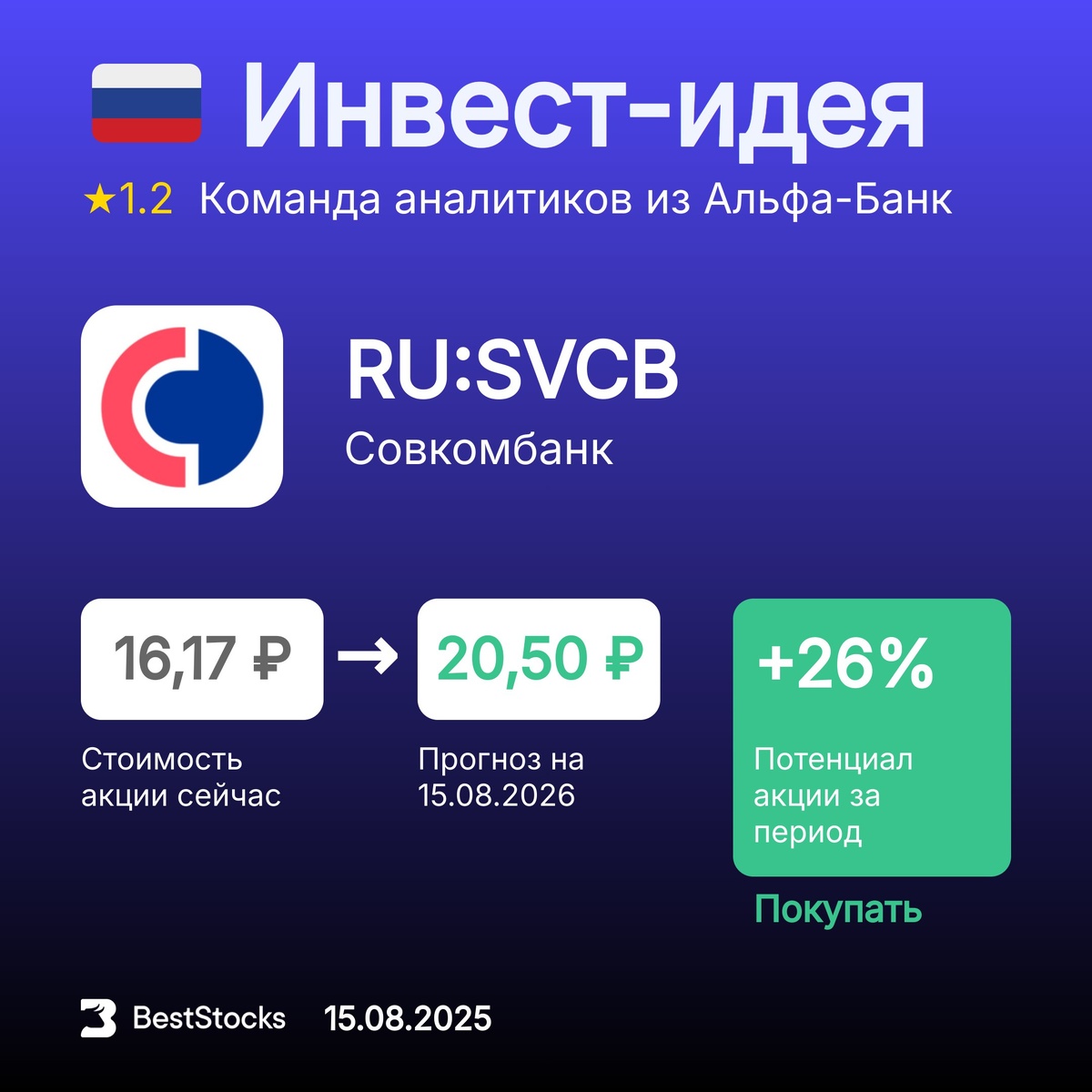 π·πΊ ΠΠ½Π²Π΅ΡΡ-ΠΈΠ΄Π΅ΠΈ ΠΏΠΎ ΡΡΡΡΠΊΠΈΠΌ Π°ΠΊΡΠΈΡΠΌ ΠΡΠΎΠ³Π½ΠΎΠ· ΠΏΠΎ Π°ΠΊΡΠΈΠΈ Π‘ΠΎΠ²ΠΊΠΎΠΌΠ±Π°Π½ΠΊ ΠΡΠΎΠ³Π½ΠΎΠ·Π½Π°Ρ ΡΠ΅Π½Π°: 20.5 β½ (+26%) Π Π΅ΠΊΠΎΠΌΠ΅Π½Π΄Π°ΡΠΈΡ: ΠΠΎΠΊΡΠΏΠ°ΡΡ ΠΠ°ΡΠ° ΠΏΡΠΎΠ³Π½ΠΎΠ·Π°: 15.08.2025 ΠΡΠΎΠ³Π½ΠΎΠ· Π΄ΠΎ: 15.08.2026 ΠΠ½Π²Π΅ΡΡ-ΠΊΠΎΠΌΠΏΠ°Π½ΠΈΡ: ΠΠ»ΡΡΠ°-ΠΠ°Π½ΠΊ ΠΠ²ΡΠΎΡ ΠΏΡΠΎΠ³Π½ΠΎΠ·Π°: ΠΠΎΠΌΠ°Π½Π΄Π° Π°Π½Π°Π»ΠΈΡΠΈΠΊΠΎΠ² ΠΡΡ ΡΠ΅ΠΊΠΎΠΌΠ΅Π½Π΄Π°ΡΠΈΠΈ Π½Π° ΡΠ΅Π³ΠΎΠ΄Π½Ρ β β’β’β’β’β’ π’π’π’ ΠΠΎΠ΄ΠΏΠΈΡΡΠ²Π°ΠΉΡΠ΅ΡΡ Π½Π° Π±Π΅ΡΠΏΠ»Π°ΡΠ½ΡΠ΅ ΠΊΠ°Π½Π°Π»Ρ BestStocks: ΠΠΈΠ²ΠΈΠ΄Π΅Π½Π΄Ρ Π ΠΎΡΡΠΈΠΈ β’ ΠΠ½Π²Π΅ΡΡ-ΠΈΠ΄Π΅ΠΈ ΠΏΠΎ Π°ΠΊΡΠΈΡΠΌ Π‘Π¨Π β’ ΠΠΈΠ²ΠΈΠ΄Π΅Π½Π΄Ρ Π‘Π¨Π