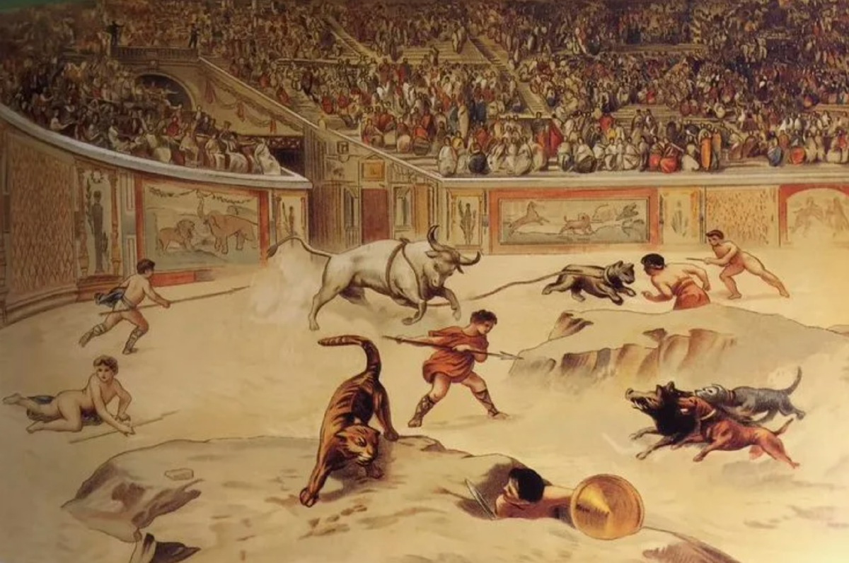 Шоу шло целый день. Утро начиналось с венацио (травли или схватки экзотических зверей). Большое количество тигров, леопардов, медведей и слонов сражалось и умирало на арене каждое представление. В полдень для особых ценителей производились театрализованные казни, которые продолжались до самого обеда, и только ко второй половине дня начинался апогей — бои гладиаторов.