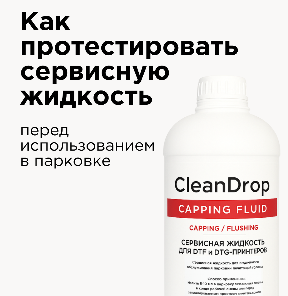 Проверить, насколько хороша сервисная жидкость для парковки, можно простым тестом: оставить принтер без работы на неделю. CleanDrop уверенно проходит это испытание: не испаряется, не образует осадка и сохраняет дюзы в рабочем состоянии.
