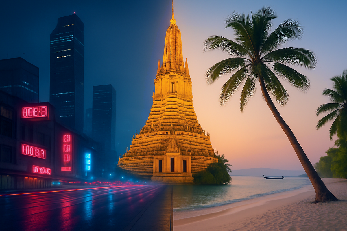 В этой статье вы узнаете, каким разным может быть Таиланд: от шумного Бангкока и древних храмов Чиангмая до белоснежных пляжей Краби. Мы собрали маршруты, советы и реальные расходы, чтобы ваша поездка стала лёгкой и вдохновляющей. Таиланд невозможно воспринимать как обычный отпуск. Эта страна живёт своим ритмом и втягивает в него каждого, кто ступает на её землю. Здесь рядом существуют сверкающие мегаполисы и тихие рыбацкие деревни, шумные рынки и уединённые храмы в горах. Бангкок встречает шумом и светом. Днём город кажется бесконечным лабиринтом улочек, где между небоскрёбами прячутся старые храмы, а на каждом шагу пахнет специями и жареным рисом. Ночью он превращается в реку огней — миллионы фонарей и вывесок окрашивают улицы в яркие неоновые цвета. На севере, в Чиангмае, жизнь идёт спокойнее. Здесь воздух наполнен ароматом жасмина, а вечерами над городом взмывают в небо сотни бумажных фонариков. Уютные улочки, украшенные цветами, хранят атмосферу древних королевств. И в этих местах