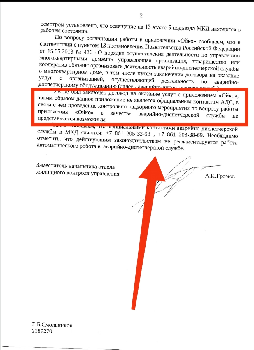 Что ж, теперь понятно, почему ответ был столь "глубоким" и "обоснованным": Громову пришлось в экстренном режиме выдумывать аргументы, почему приложение, которое УК фактически использует, якобы "неофициальное". Видимо, по его логике, если УК не заключала договор с "Ойко", то может смело игнорировать обращения – а граждане пусть радуются, что их заявки хотя бы красиво нумеруются перед автоматическим удалением!