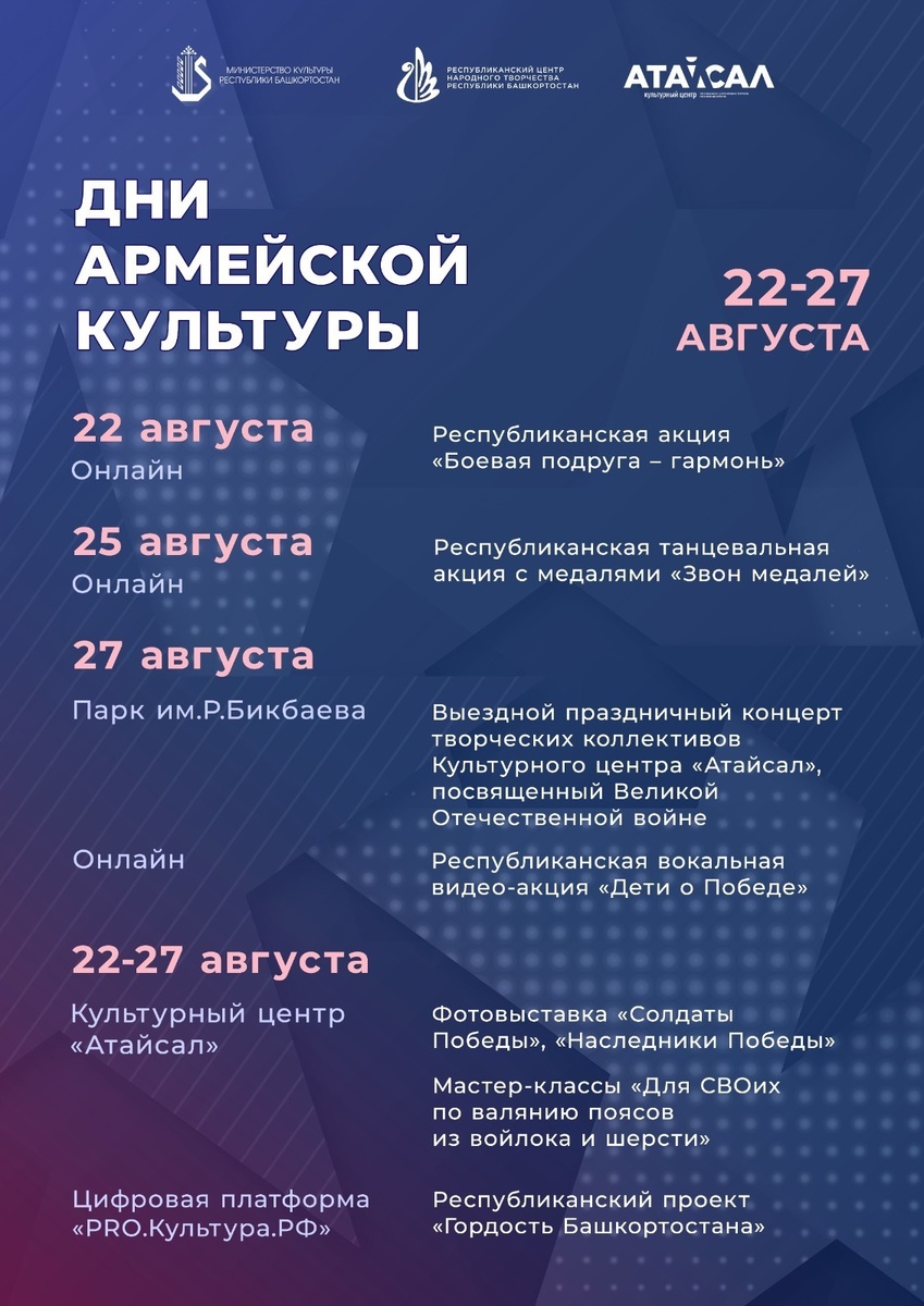 С 22 по 27 августа 2025 года в Уфе пройдут Дни армейской культуры, посвященные 80-й годовщине Победы в Великой...