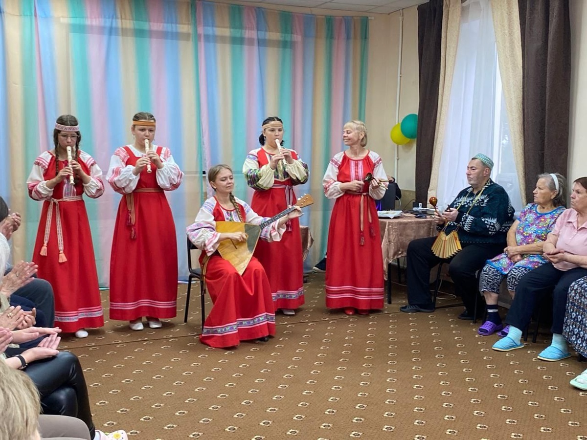 "Любава" и гости вдохнули жизнь в народные традиции на празднике "Трёх Спасов" В отделении дневного пребывания состоялось празднование, посвящённое трём народным Спасам – Яблочному, Медовому и Ореховому, знаменующим благодарность природе за богатый урожай и наступление осени. Сюрпризом для гостей стало выступление фольклорного ансамбля «Любава», использовавшего традиционные русские инструменты, такие как флейты, ложки и балалайка, создав атмосферу старины и ностальгии. Забытые, казалось бы, традиции народных песен и танцев ожили, возвращая слушателей к истокам русской культуры и быта. Неожиданно к празднику присоединились поэт Леонид Сидоркин, импровизировавший частушки, и музыкант Леонид Николаев, аккомпанировавший ему на трещотке. Зрители с восхищением наблюдали за участницами ансамбля «Любава», сумевшими передать любовь к народной культуре через свое творчество. Особая благодарность была выражена руководителю коллектива Оксане Шляпниковой за ее преданность фольклорному искусству