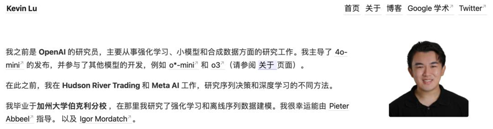 Кевин Лу — один из заметных адептов «малых моделей», усиленного обучения и синтетических данных. До OpenAI он занимался последовательным принятием решений и глубоким обучением в Hudson River Trading и Meta AI (запрещённой в России), а бакалавриат окончил в Калифорнийском университете в Беркли. Его практический фокус — сокращать дистанцию между идеями из статей и реальной пользовательской ценностью.