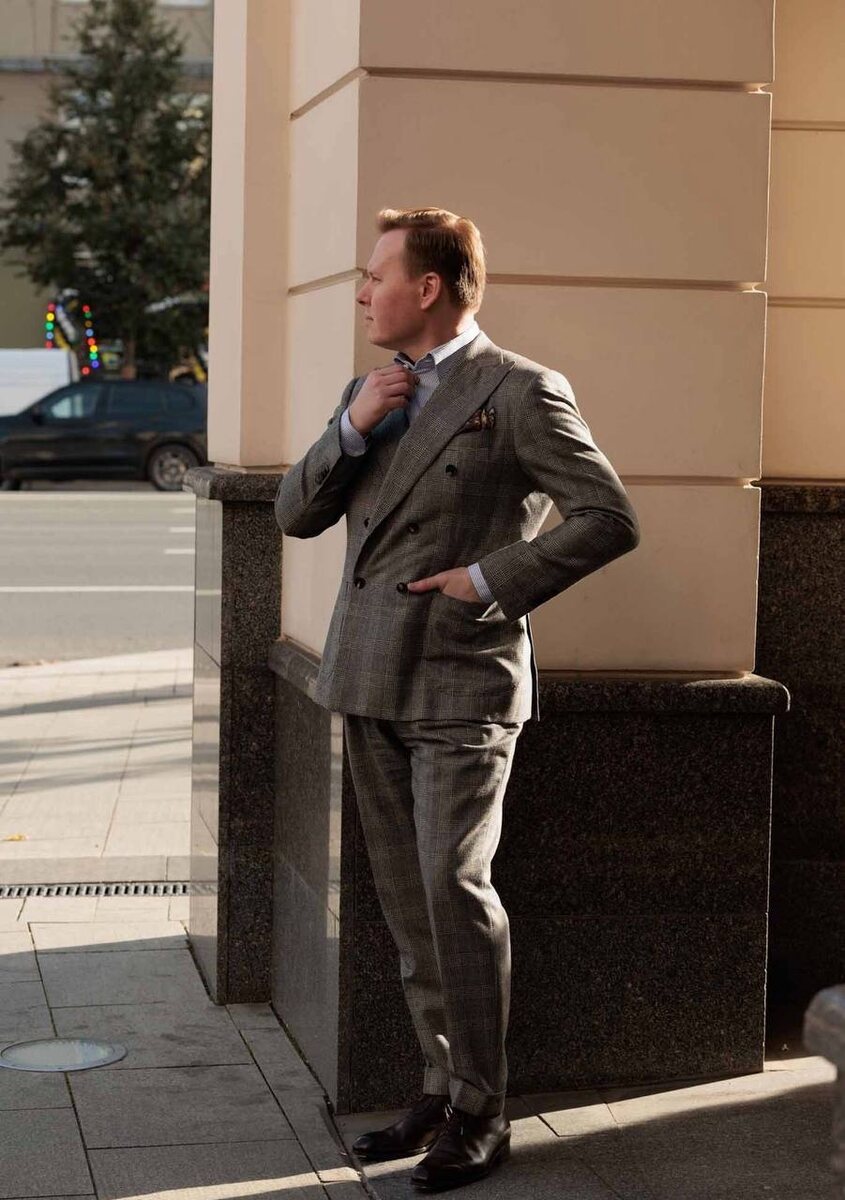Ткань в рисунок «Принц Уэльский» - это прекрасный вариант для неформального костюма на приближающуюся осень! В России в целом достаточно слабо развито понимание того, каким должен быть неформальный костюм. Это костюм, который не подходит для ношения в офисе со строгим дресс-кодом или присутствия на важных деловых переговорах. Надевая костюм из мягкой фланели с неброским паттерном мужчина как бы говорит окружающим: «У меня нет сегодня каких-либо важных дел, но сегодня я хочу выглядеть именно так и лишь ради своего собственного удовольствия!». Некоторым людям иногда свойственно одеваться с оглядкой на их восприятие окружающими. Джентельмен же одевается исключительно для себя. Однако через свой внешний вид мужчина выражает свое отношение к окружающим и демонстрирует уважение к самому себе! Неформальный костюм может быть как однобортным, так и двубортным. Он отлично носится без галстука, прекрасно сочетается с трикотажем, например, с водолазкой или свитером с высоким горлом.
