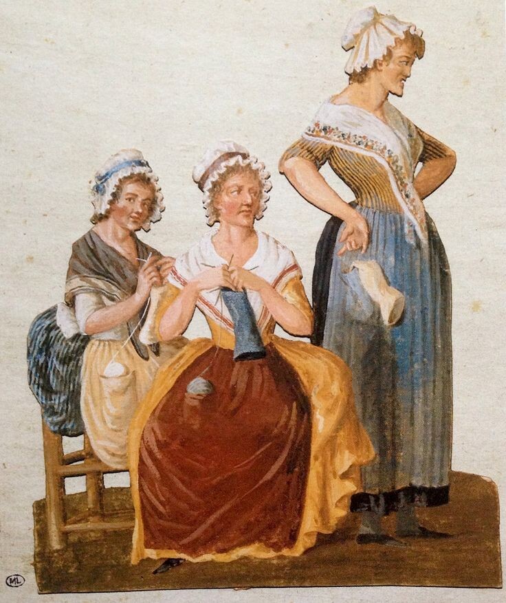 Когда мы слышим словосочетание «вязальщицы Робеспьера», в голове сразу рисуется почти кинематографическая сцена: суровые женщины сидят у гильотины, спицы щёлкают, головы падают. Атмосфера та ещё. Но на самом деле за этим образом скрывается куда более интересная и объёмная история. Кто такие «трикотёжки»? Во времена Французской революции в Париже действительно существовали женщины из низших слоёв общества, которых называли tricoteuses — «вязальщицы». Они активно участвовали в политической жизни: ходили на митинги, заседания, маршировали и… вязали. Спицы были под рукой всегда. Что они вязали? Есть мнение, что вязальщицы занимались не только «для себя», но и для дела революции. Они вязали чулки, шарфы и даже свитера для солдат революционной армии. По сути — выполняли волонтёрскую работу по снабжению бойцов. Ну, или оплачиваемую работу: за многие такие услуги им действительно платили. Вязание как политика Сидя на собраниях якобинцев, эти женщины не просто вязали — они играли роль «поддержк