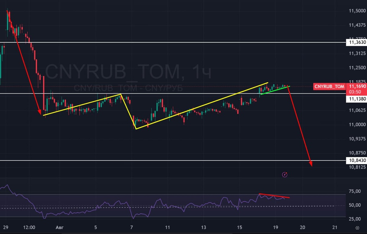 В ответ на пост 🔤 Юань-Рубль 🟢 С поста, который я писал в понедельник, особо ничего не изменилось. Сегодня многие поверили, что юань точно покинул старую гавань и начинает свое путешествие наверх. Обычно такие всплески эйфории о том, что худшее позади, приводит к возврату цены на лои. 🚗 Всё это движение вправо воспринимаю как коррекцию к прошлому индексу, сейчас надо следить за пробоем зеленой наклонки - пробьем, значит путешествие вверх закончилось. Удивительно и то, что в преддверии разговоров о мире, у нас растут валютные пары. #юаньрубль #прогнозрубля #юань #рубльдоллар #CNY #CNYRUBF #CNYRUB #bogdanoffinvest