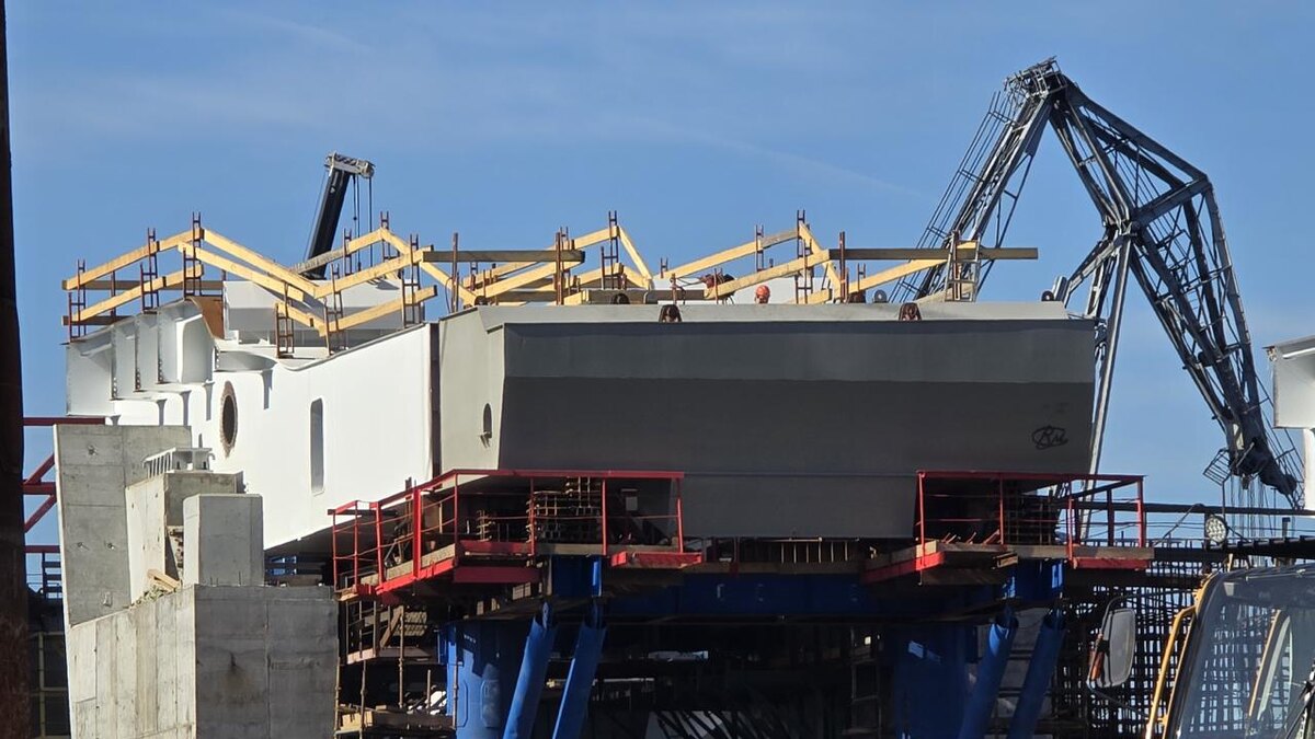 🌉 Большой Смоленский мост: завершен важный этап строительства Специалисты завершили монтаж противовесных блоков на шестой опоре Большого Смоленского моста. Эти блоки, каждый весом более 50 тонн, станут основой разводного пролета. После заполнения чугунными и свинцовыми элементами их общий вес достигнет 1469 тонн, что обеспечит надежную балансировку «крыльев» моста. На объекте продолжаются работы: армирование и бетонирование технических помещений, монтаж временных металлоконструкций, подготовка к установке гидравлических цилиндров. На левом берегу Невы завершается сборка разводного пролета. В строительстве задействовано более 500 специалистов и 87 единиц техники. Уже установлено более 6 тысяч тонн металлоконструкций из 9 тысяч запланированных. Фото: Администрация Санкт-Петербурга Петербургский дневник