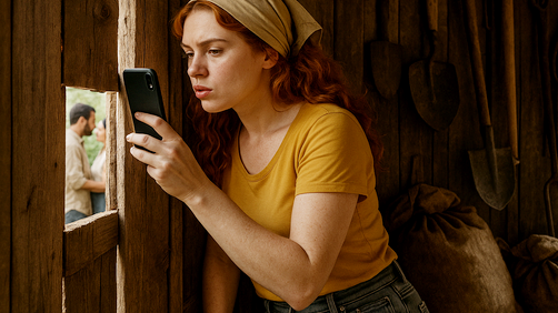 Настя осторожно прижалась к стене сарая и выглянула в маленькое запыленное окошко. Она достала телефон и начала снимать на камеру.